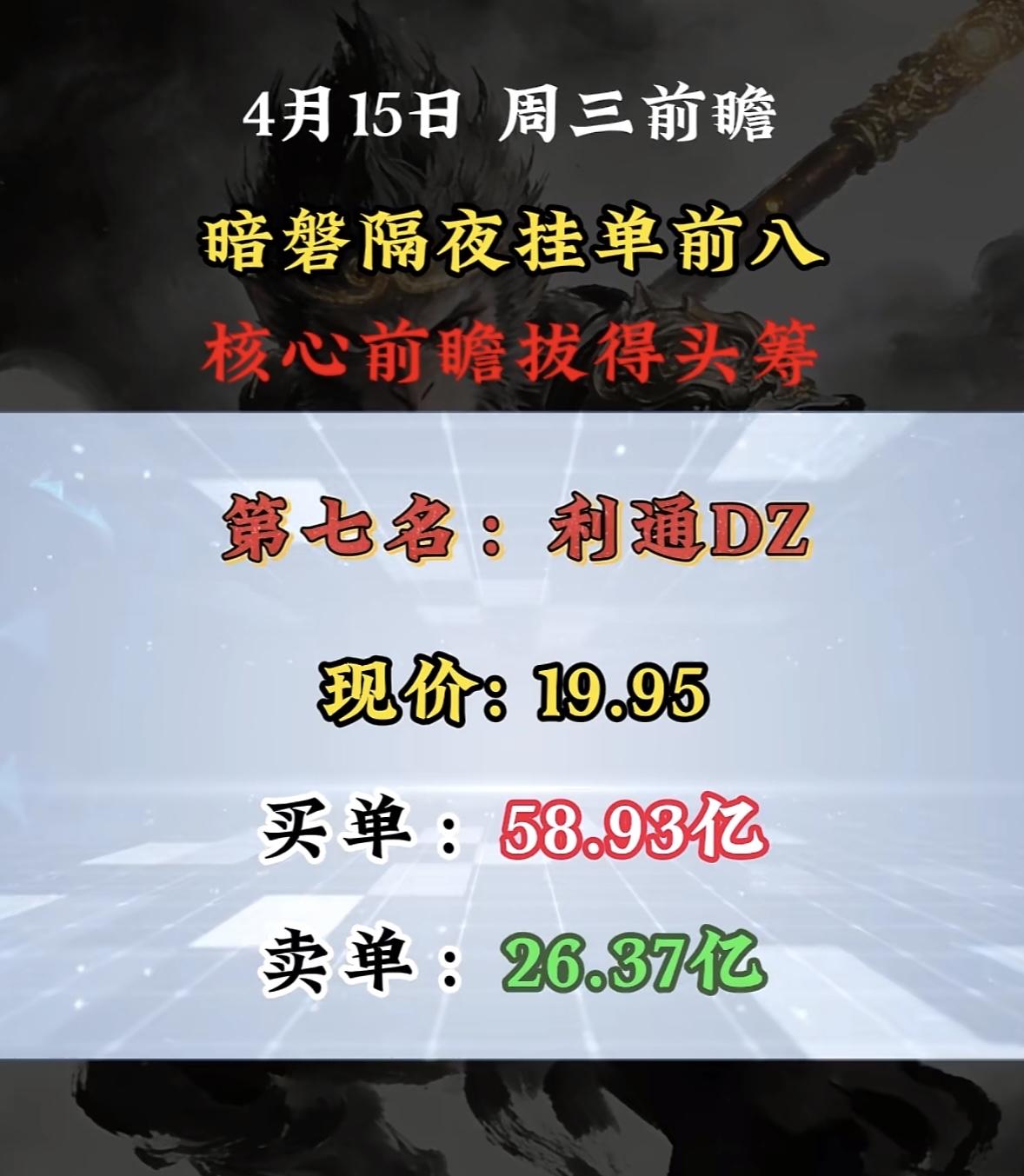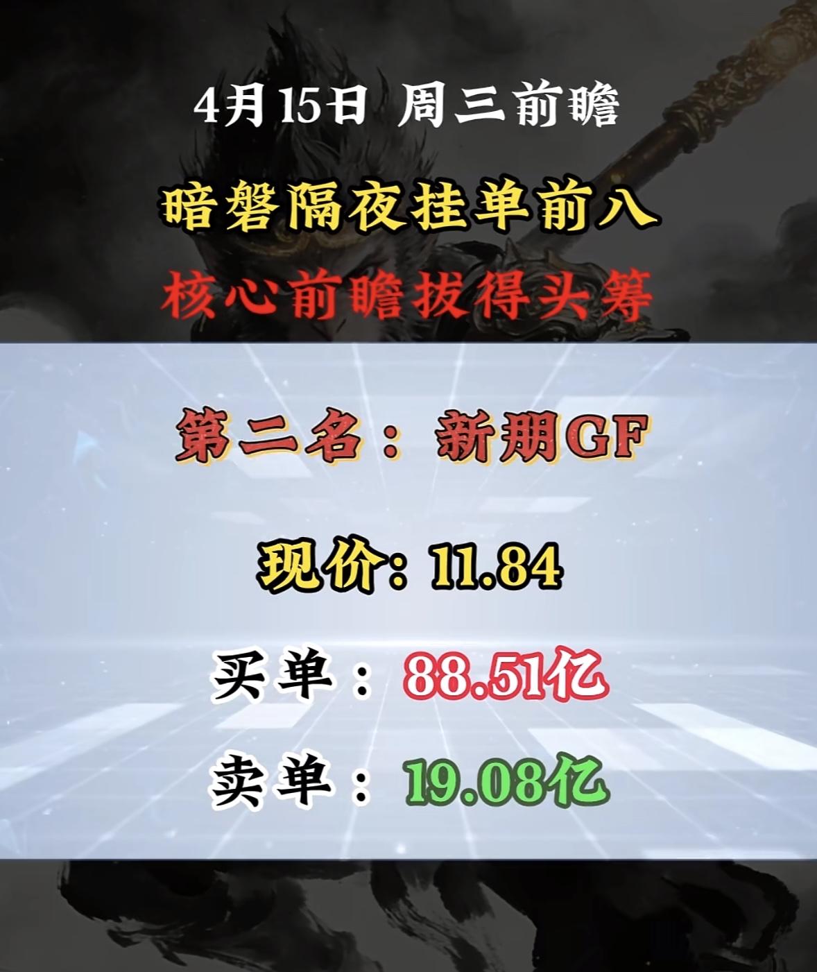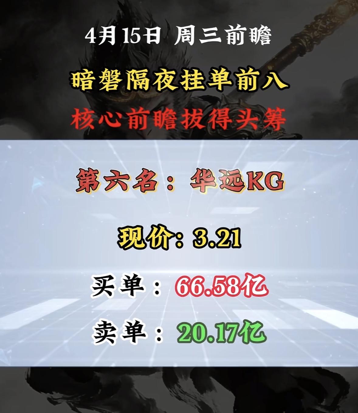 4月15日周三暗盘隔夜挂单排行榜揭晓