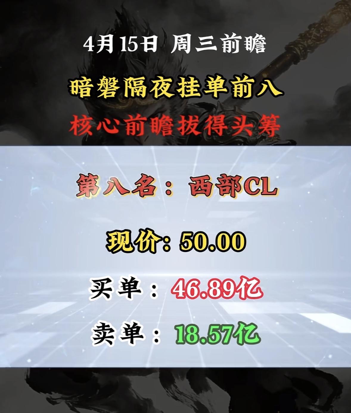 4月15日周三暗盘隔夜挂单排行榜揭晓 暗盘隔夜挂单西部材料这阵仗可太猛了!现价