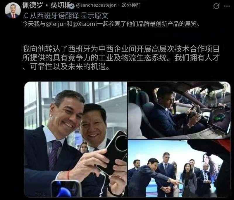 短短几天内,中国国民党主席郑丽文与西班牙首相桑切斯相继参访小米核心产业基地,西班