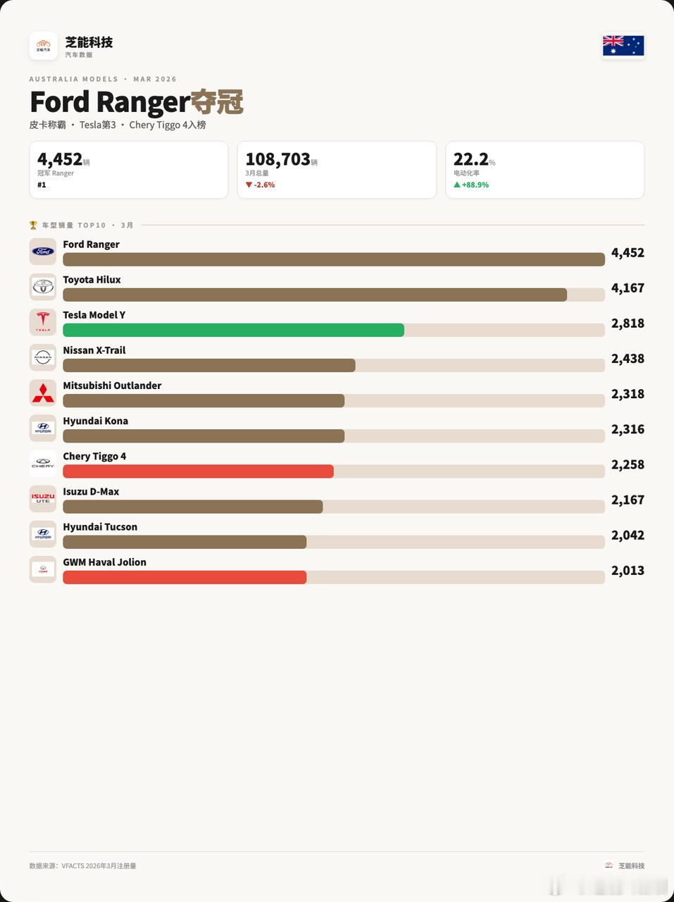 全球车市 | 澳大利亚2026年3月:比亚迪7200台,进入前三
