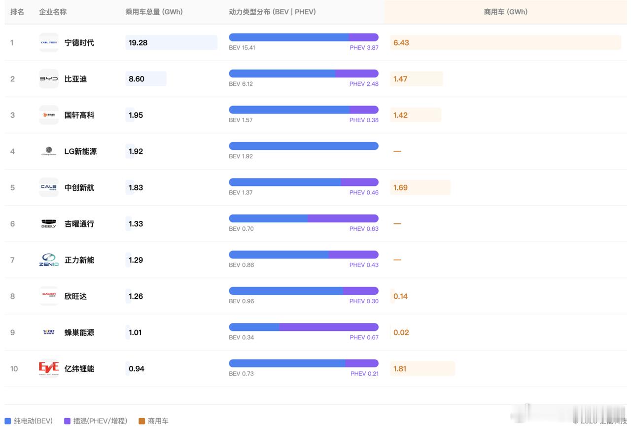 一季度整体延续高增态势,储能成为核心增量,国内需求基本平稳,增长主要靠海外与整车出口拉动。企业端格局稳定,宁德时代、比亚迪稳居前二,二线厂商竞争激烈,商用车与插混领域各有侧重。整体看行业外需强劲、内需平稳,头部集中度持续提升。