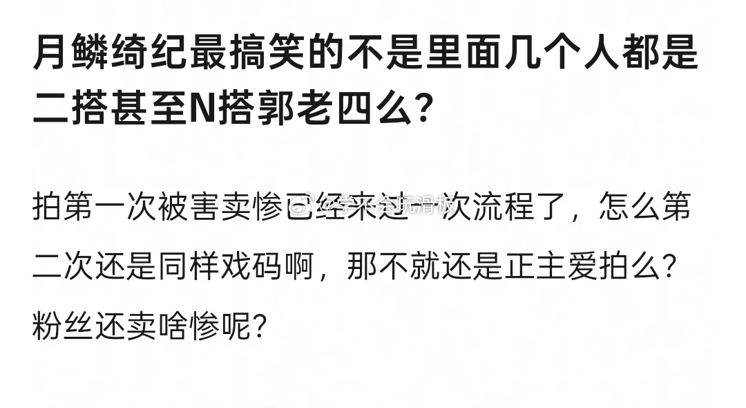 我看到瓣内已经接受不了月鳞绮纪剧情的帖子了,嘲讽四位演员粉丝“卖惨”但是说真的,