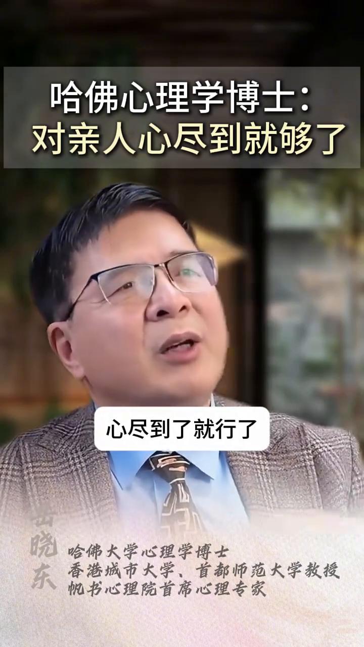 哈佛心理学博士:对亲人心尽到就够了。 晓东,哈佛大学心理学博士,香港城市大学,首