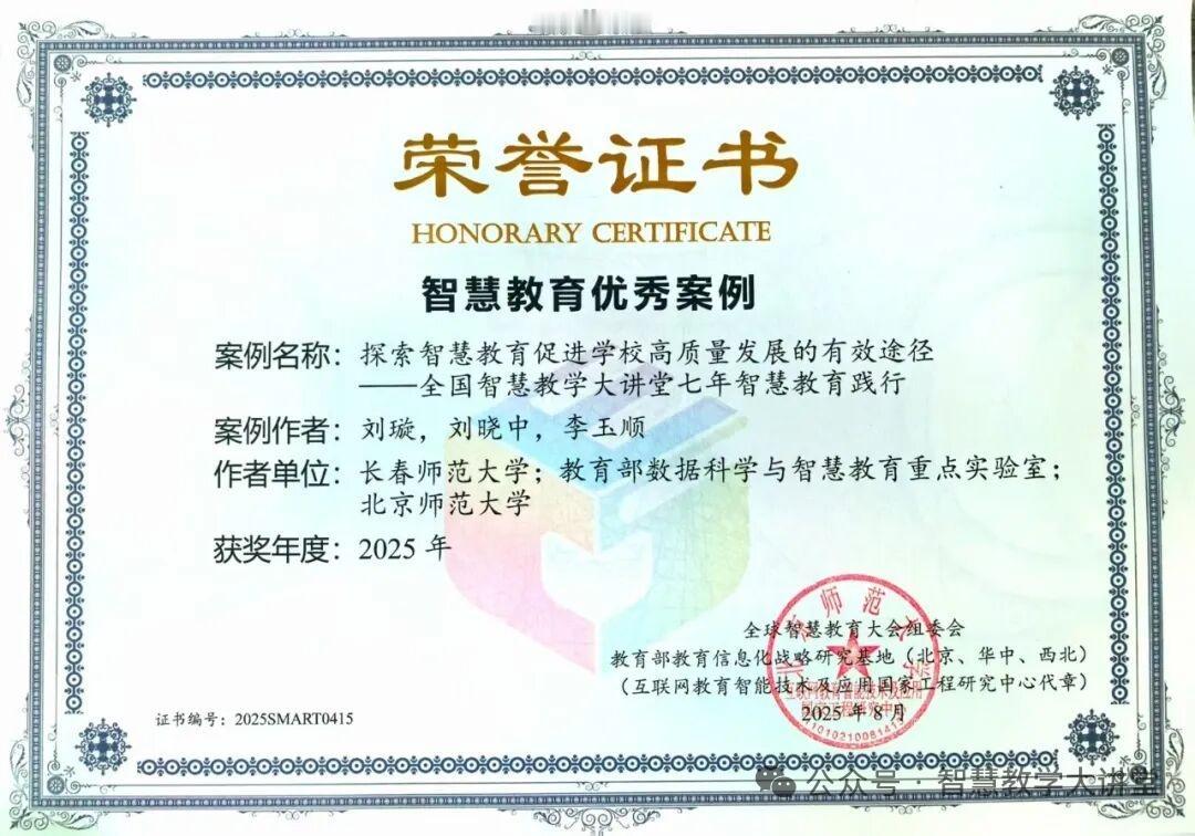 全国智慧教学大讲堂通过八年持之以恒的交流研讨,使全国1000多所学校校长及30多万教师受益,获得全球智慧教育大会《智慧教育优秀案例》奖。