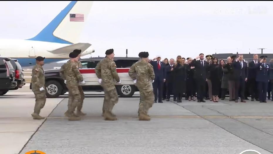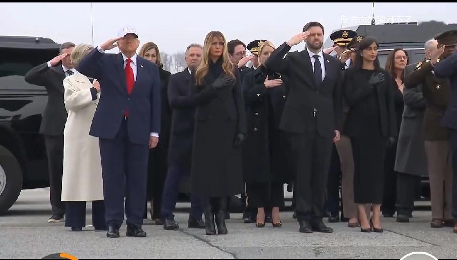 美军运回了在伊朗战场阵亡的美军遗体。特朗普率内阁到机场迎接,仪式感还算满满的。
