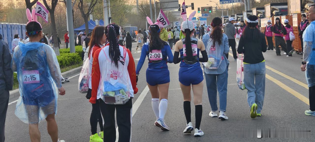 ​看看我们跑马拉松的兔子。这都是美女。年轻的美女都爱美、爱化妆。跑21公里,天气又比较热。汗流浃背,把脸跑花了,那多难看啊?