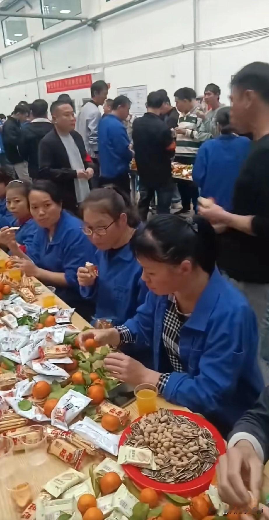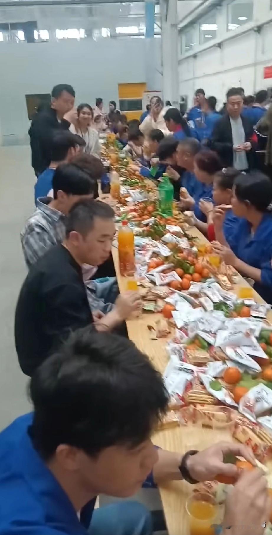 你敢相信这是著名企业年会吗? 桌上的食物琳琅满目, 让人垂涎欲滴! 许多员工围