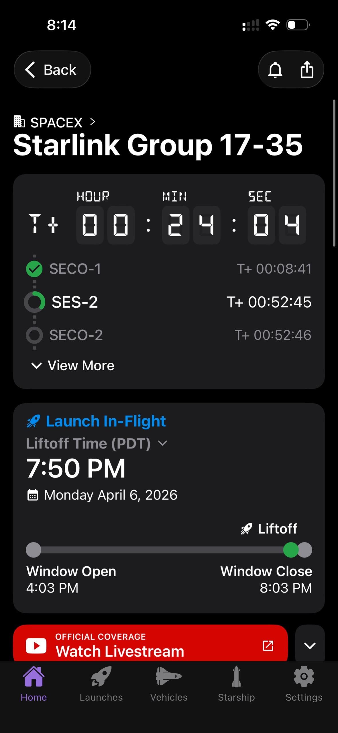 美西时间 4 月 6 日晚 19:50,SpaceX 猎鹰 9 号火箭在加州范登堡基地再次升空,这已经是 SpaceX 在 2026 年执行的第 42 次发射任务。