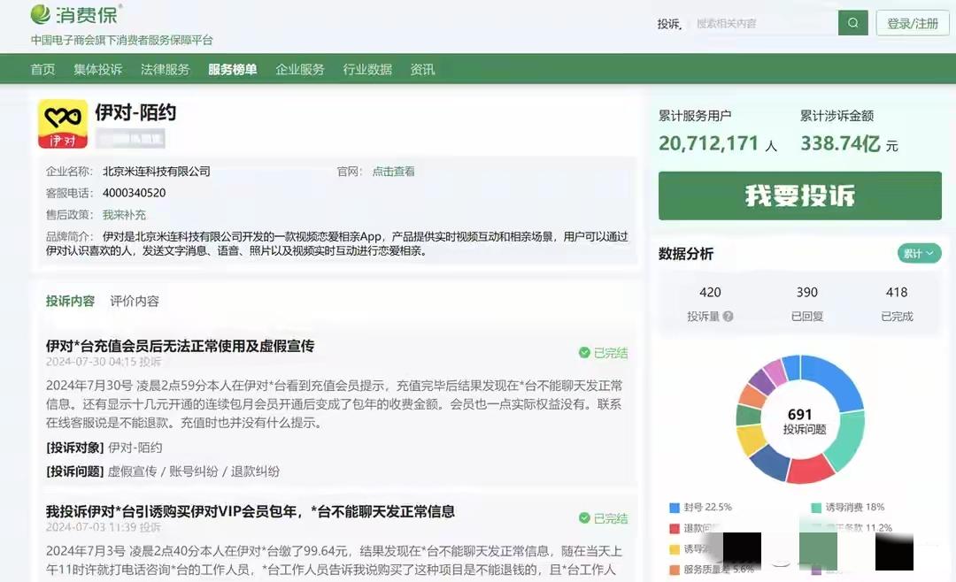 2025年,伊对母公司米连科技营收41.22亿元,120万付费用户每人每月平均花305.6元。投诉铺天盖地,钱却照充不误。