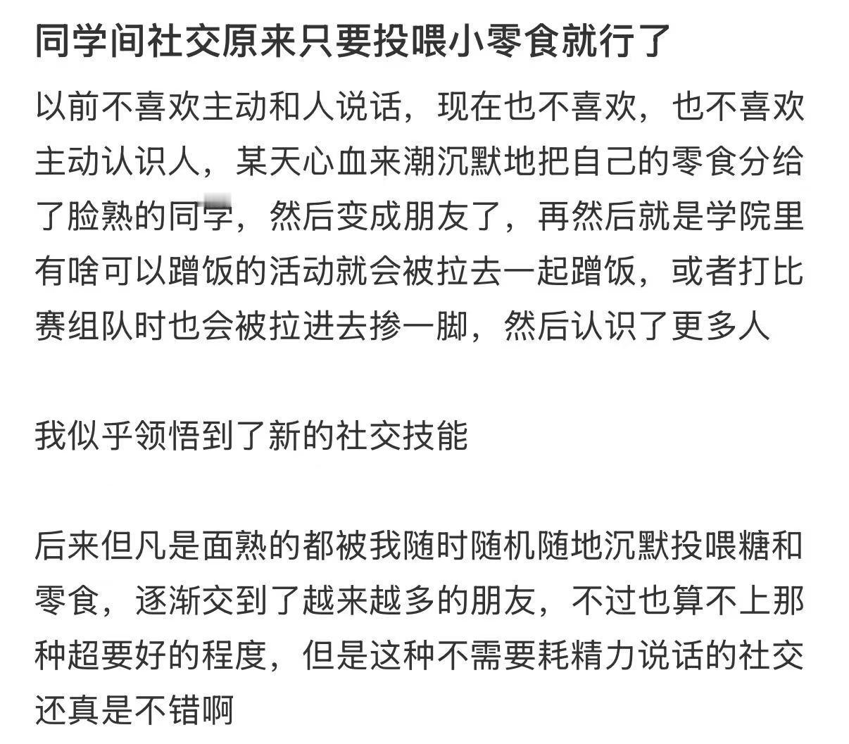 社交小妙招 其实同学间社交只要投喂小零食就行了。