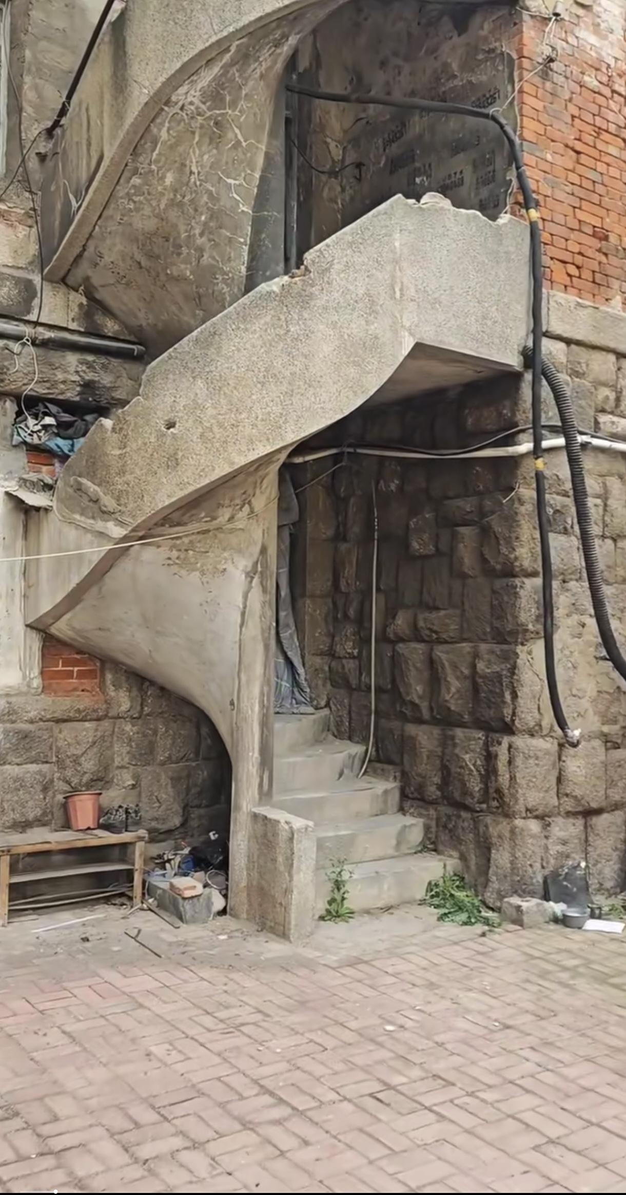 虽然破旧,但旋转梯楼设计的真的很好看,当年盖的时候肯定特亮眼。很有高迪的味道,可惜了。能想象当年房子很新很新,男主为女主修了楼梯,看着爱人上下出入,浪漫的爱。