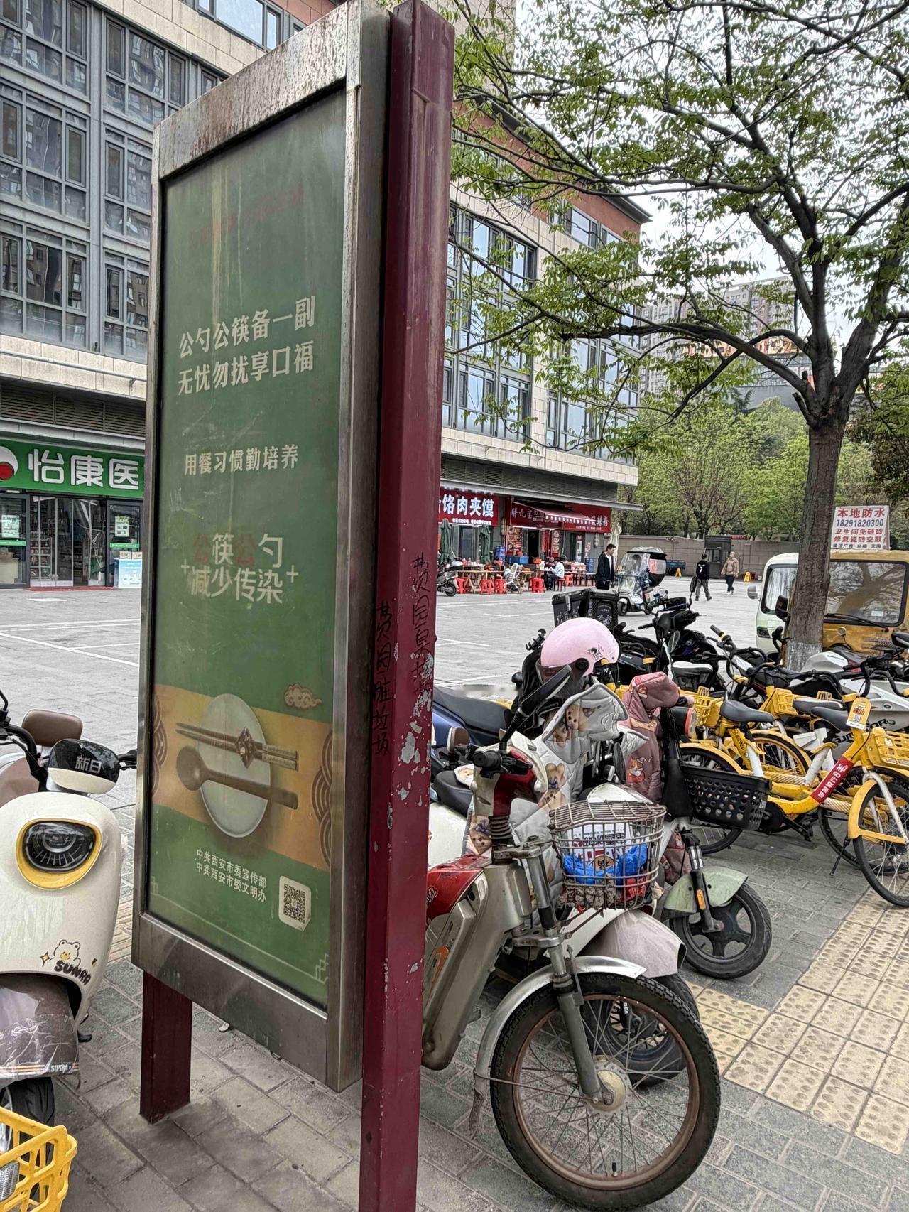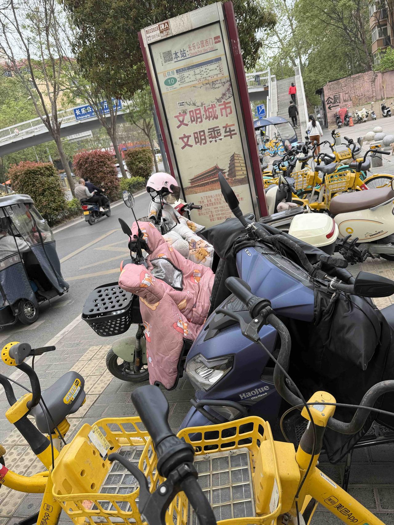 无奈中,我只好又向前走了一会,绕过停放占道的二轮电动车和共享单车,才来到了站牌前面。