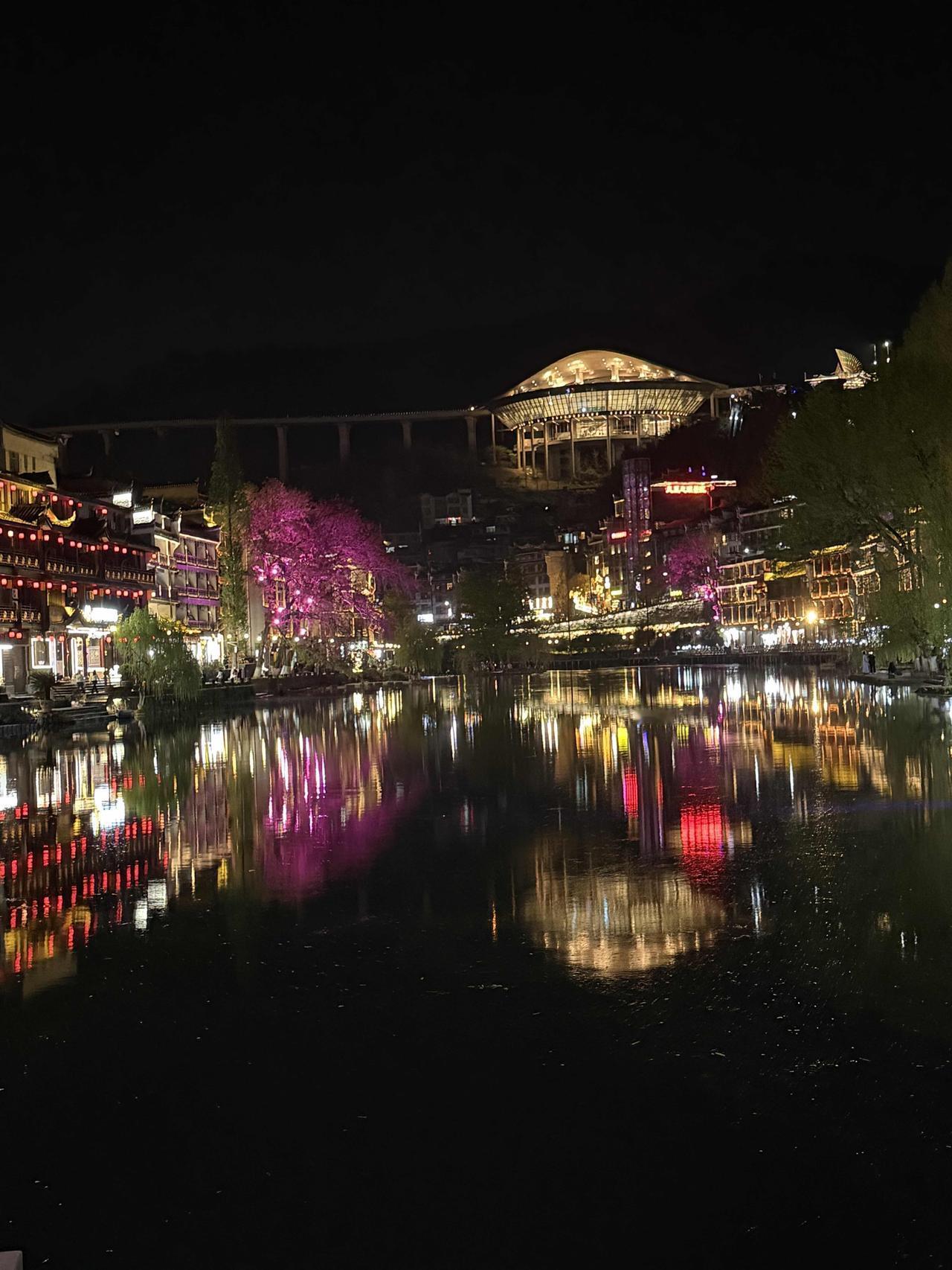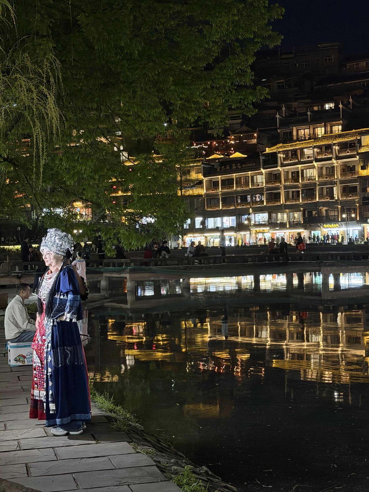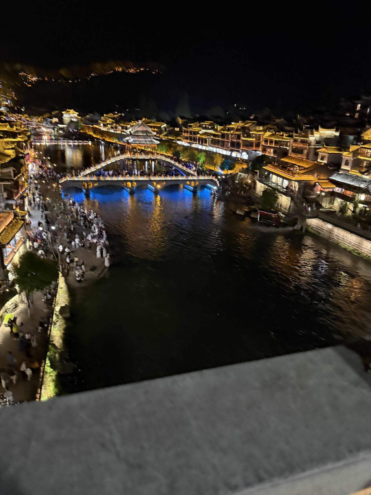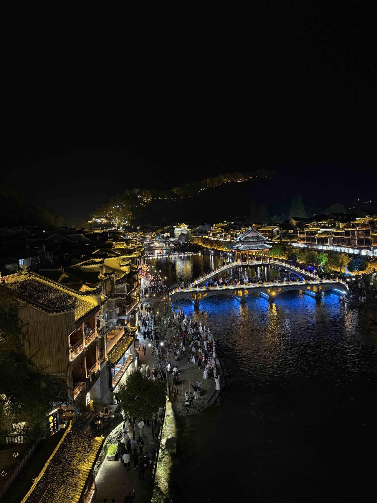 前几天,我下午到湖南湘西的凤凰古城入住后,晚上就迫不及待地出来欣赏夜景。