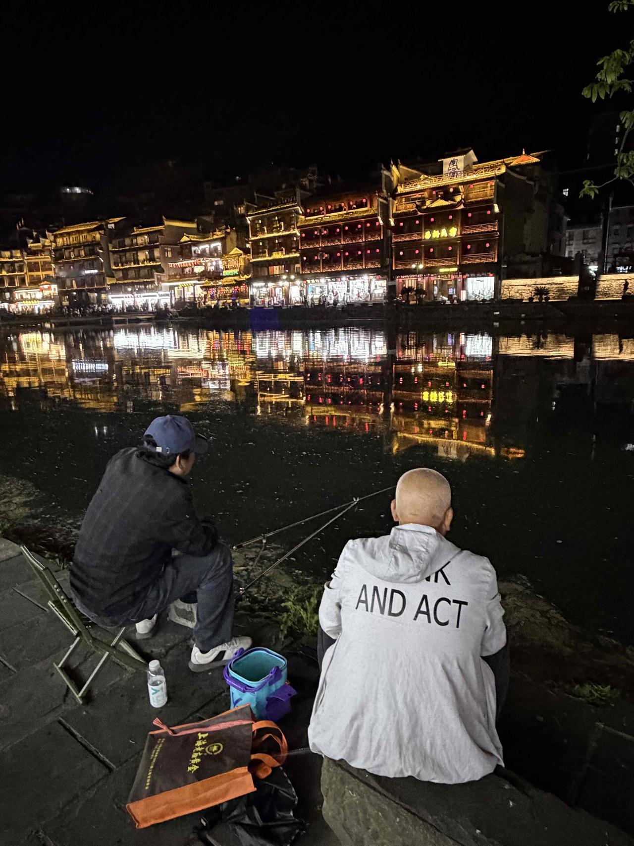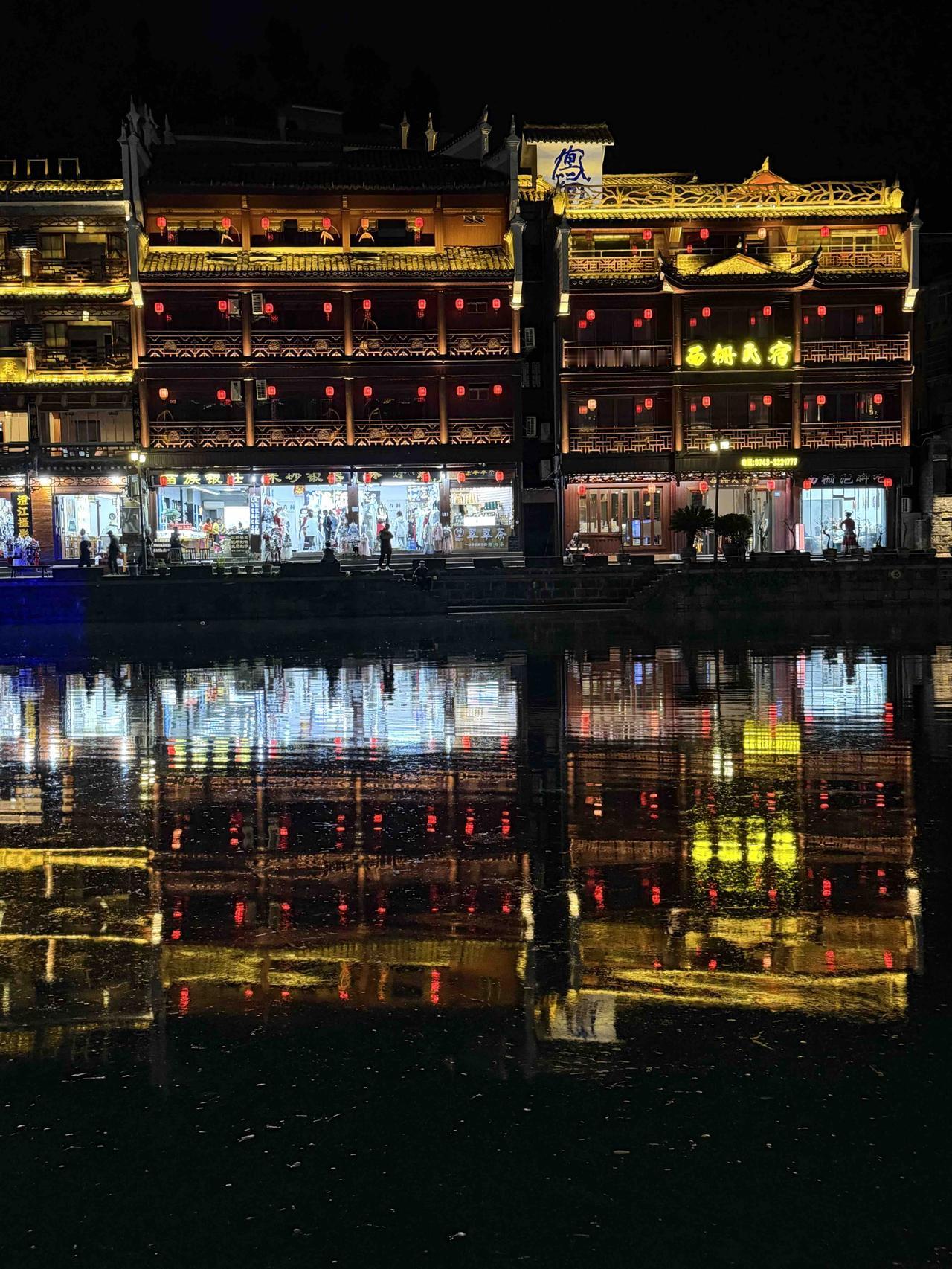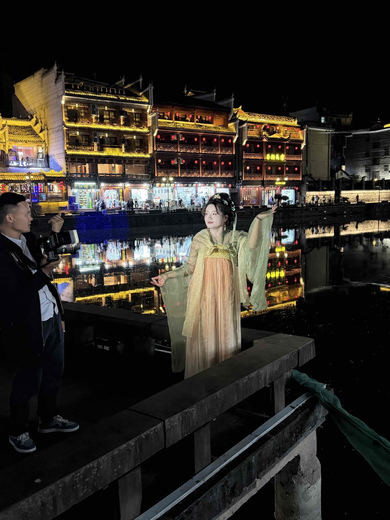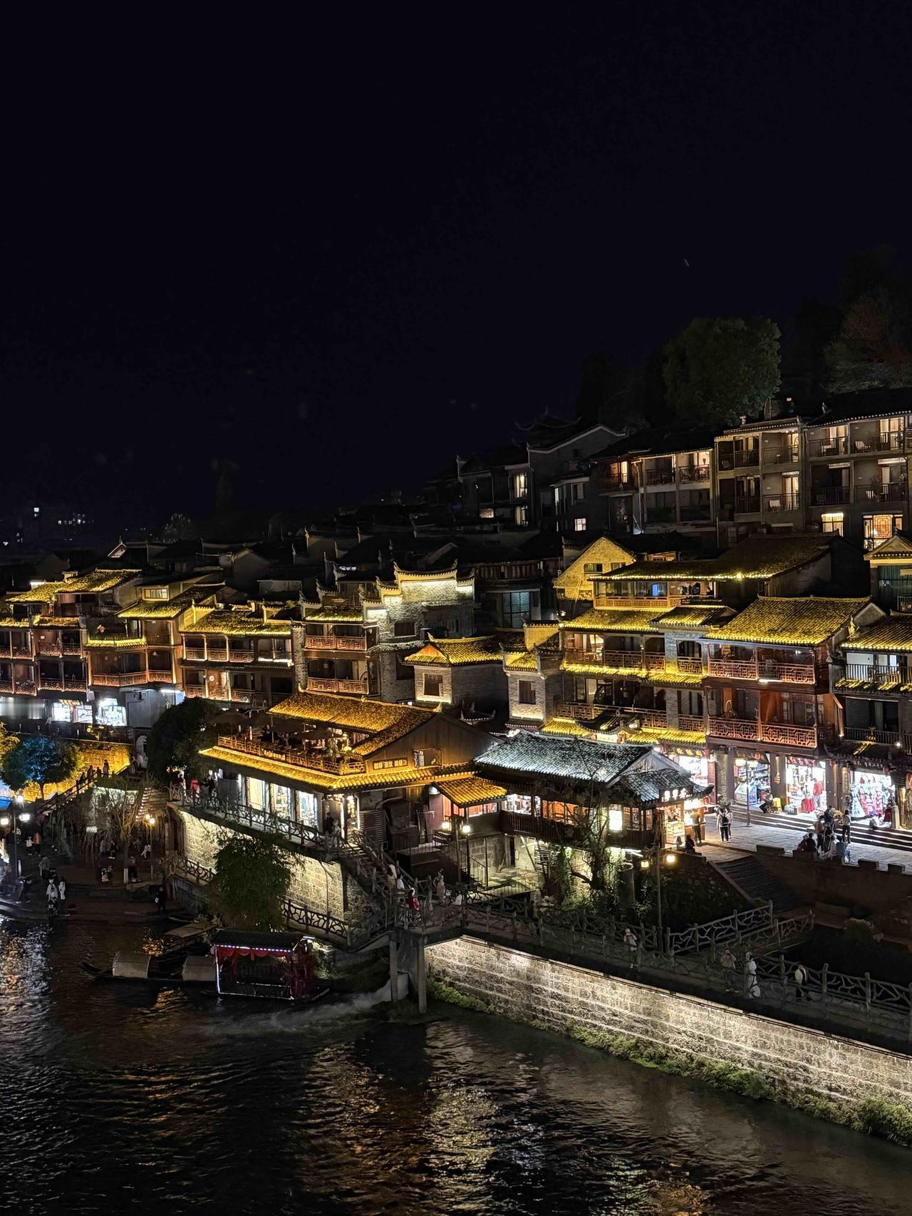 前几天,我下午到湖南湘西的凤凰古城入住后,晚上就迫不及待地出来欣赏夜景。
