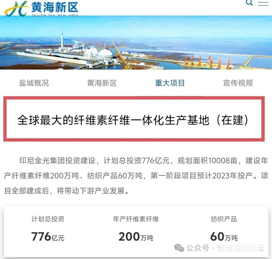 盐城总投资 776 亿的金光全球最大纤维素纤维生产基地,已迈入主体工程全面施工阶