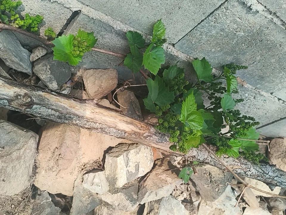 在自己的小菜园里拍摄的两株葡萄树。