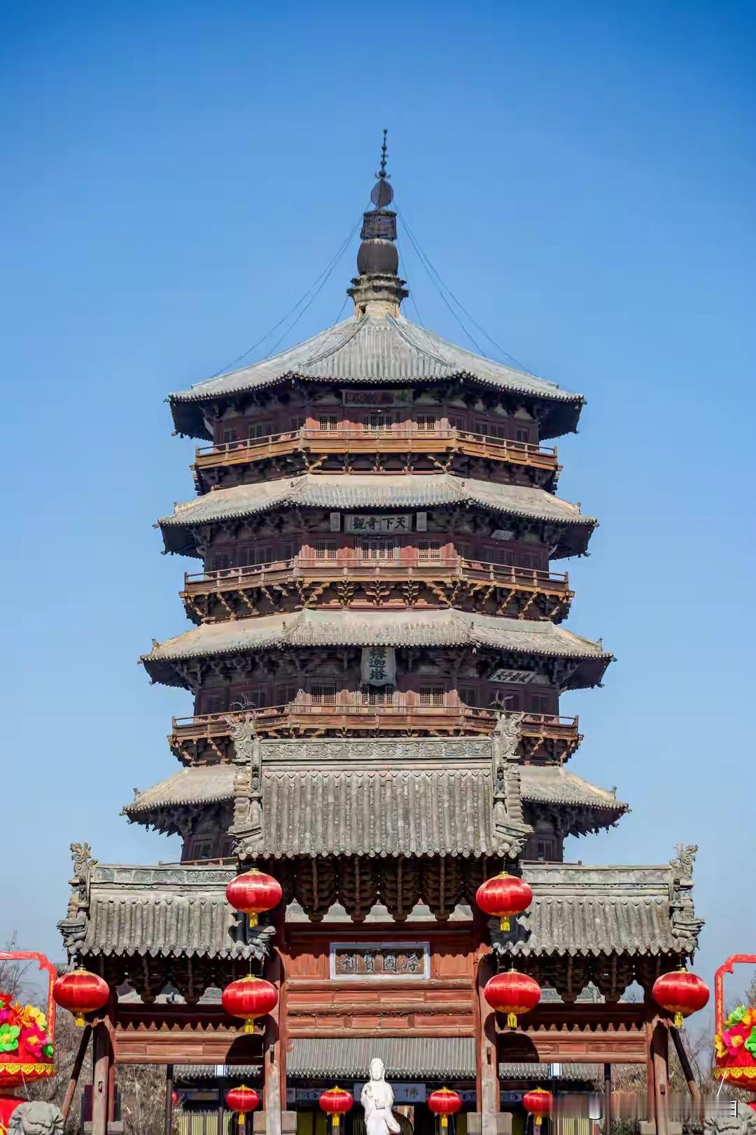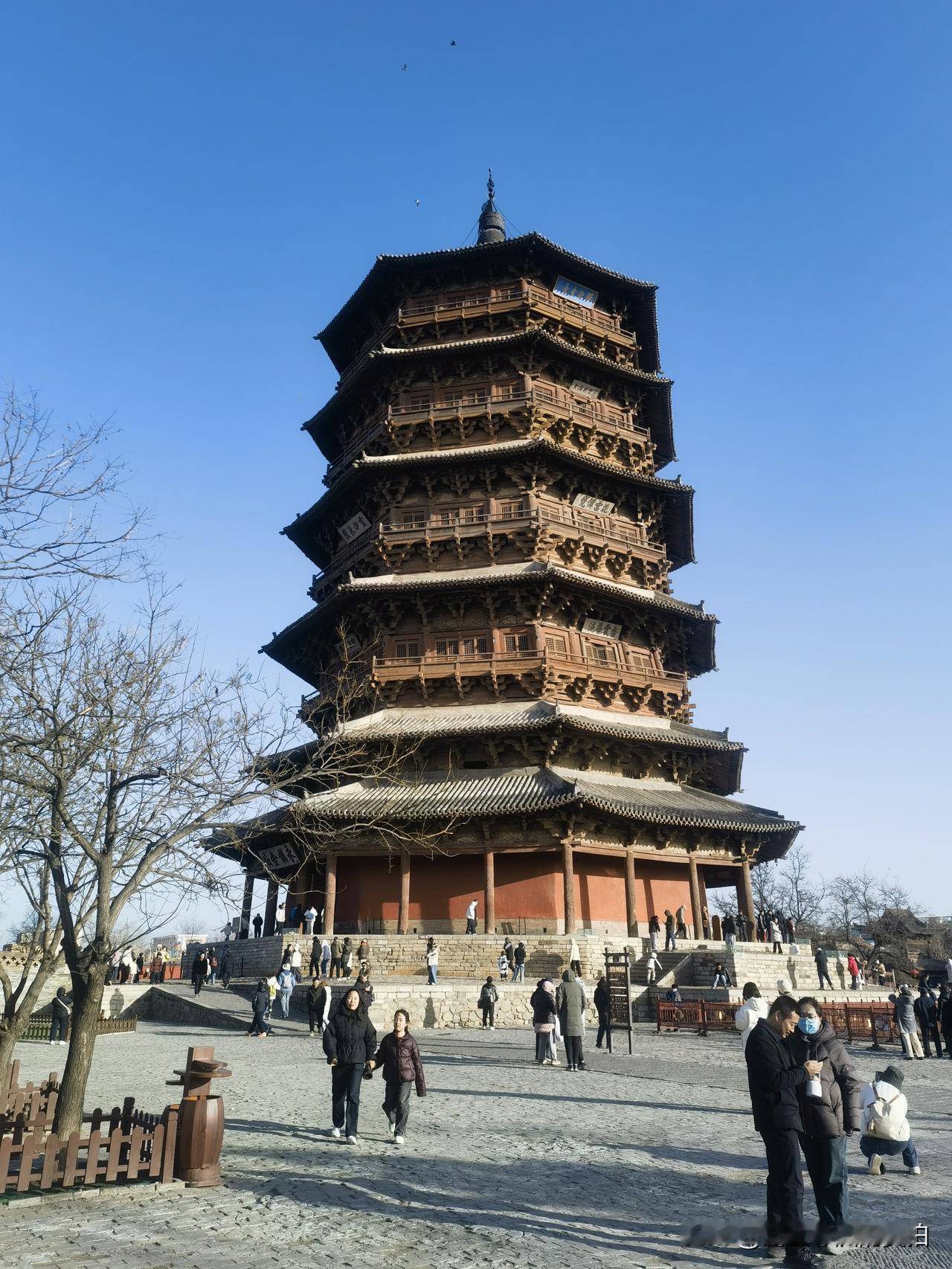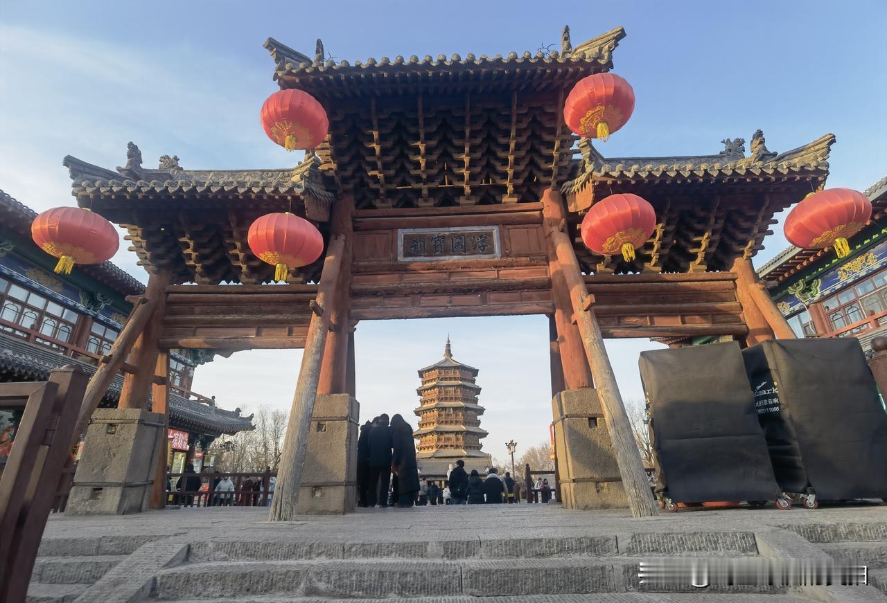 这次春节假期,我有幸到应县木塔打卡游览,内心十分震撼。应县木塔全称佛宫寺释迦塔,在佛宫寺内,属于辽代木构塔,有人说塔身倾斜,我是没有看出来。非常值得一去。恰逢天气晴好,拍出的照片和视频都特别出彩。