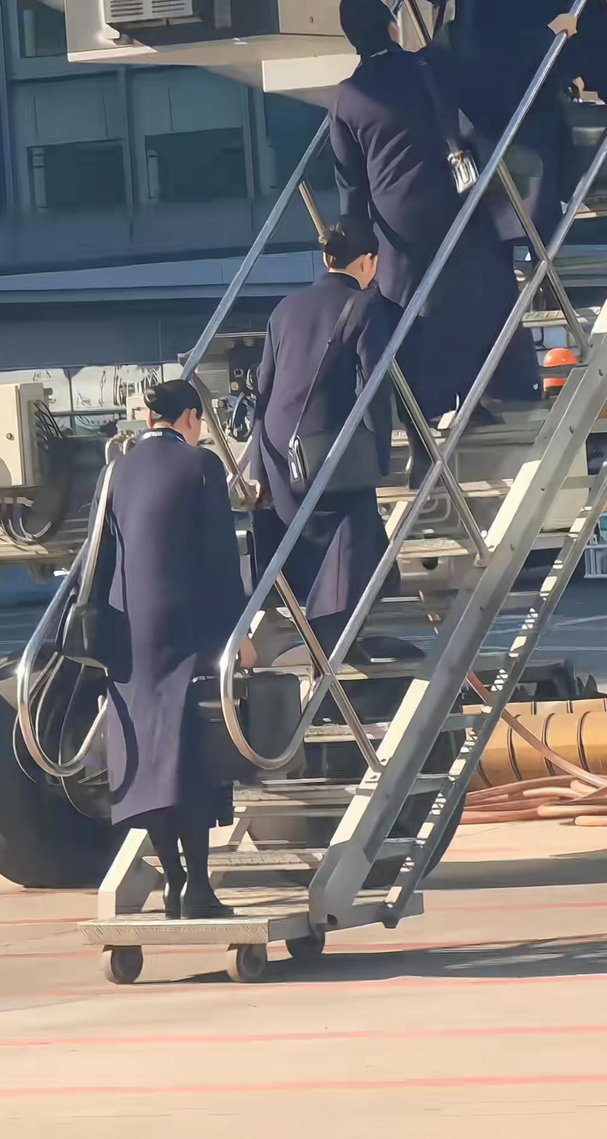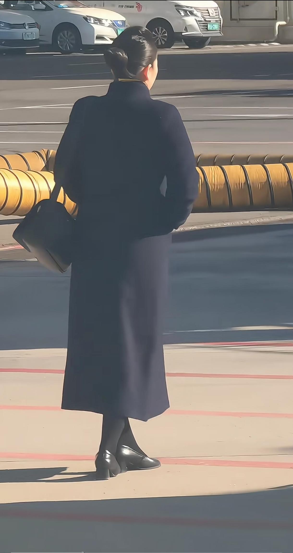 带劲,这大体格子,一袭黑也不显瘦,北方女人的美。微胖的女人是最好看的。一看就是国航的,福利真好呀!太有派了,纯毛呢大子大衣。都养的膀大腰圆,我要去考空少去。
