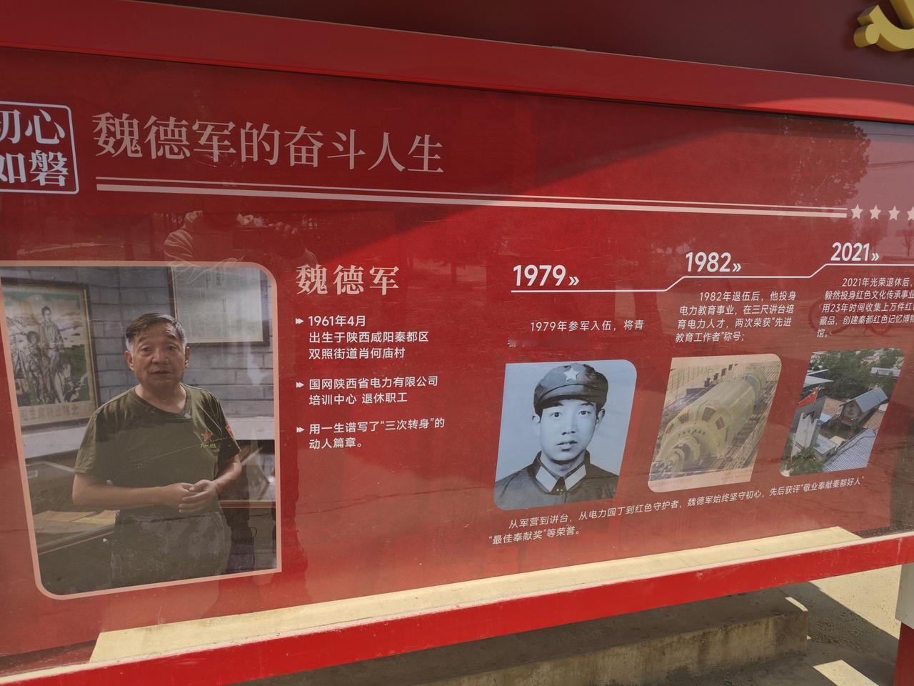 骑车来到萧何庙村,首先映入眼帘的就是“红色记忆博物馆”,他是由国家电网公司职工魏德军(萧何庙村人)个人收集收藏上万件红色历史文物建成的私人博物馆,现在已经成为了秦都区的红色教育基地,免费为游客开放。可惜的是自己来的不是时候,馆长回家吃饭休息,下午两点才能开门参观。