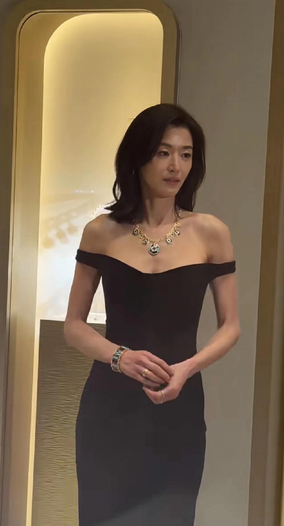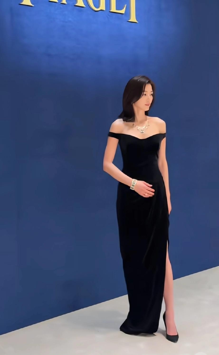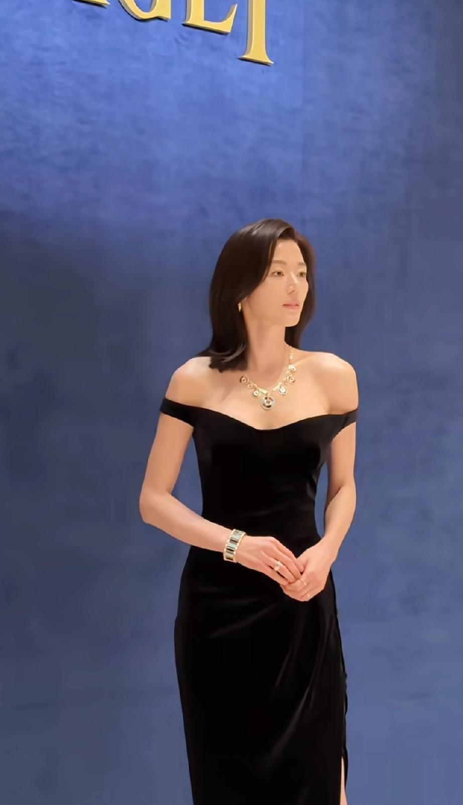 当天,全智贤一身黑色一字肩低领抹胸礼裙,优雅大气,她的状态这几年忽上忽下,但身材一直是被夸的。