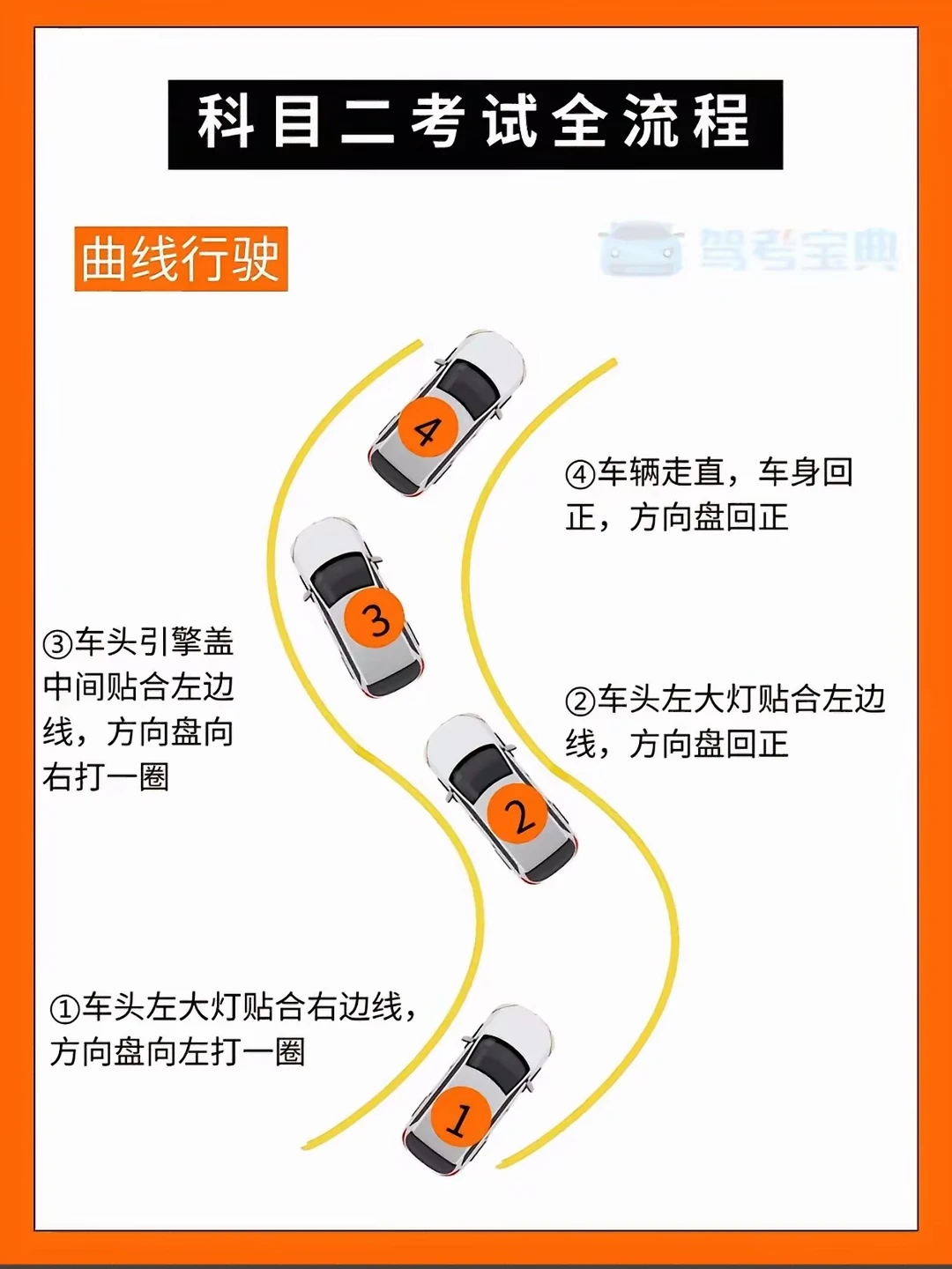 ③观察到左后视镜下边缘与粗黄线重合停车(考虑制动距离,提前约