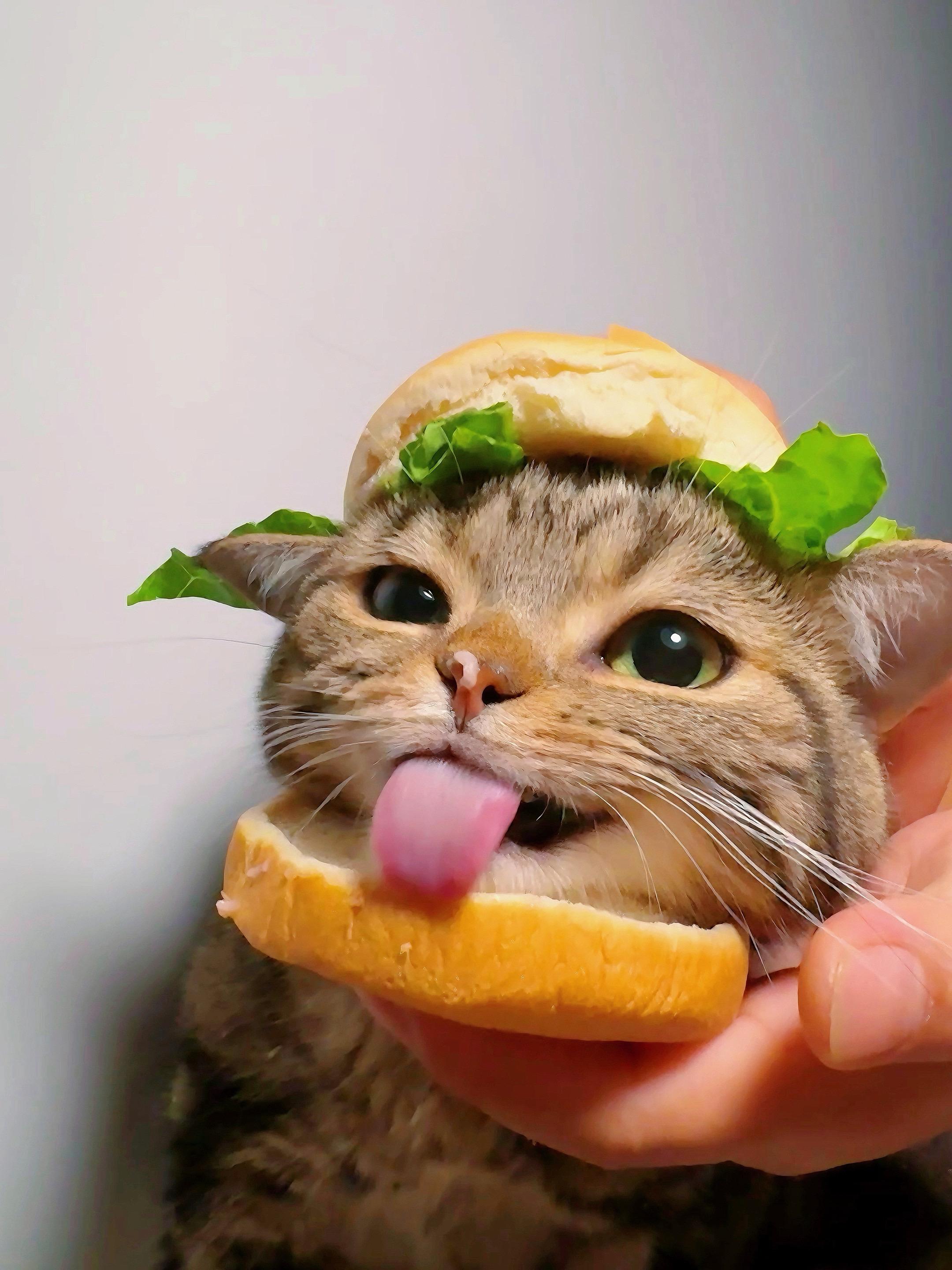 请接收一下你的芝士培根猫头汉堡包🍔。