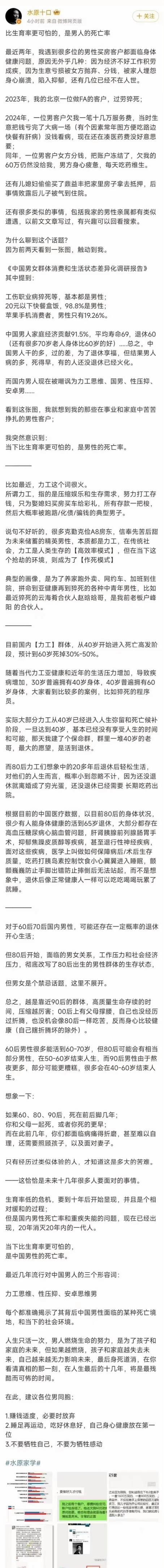 比生育率更可怕的,是男人的死亡率!