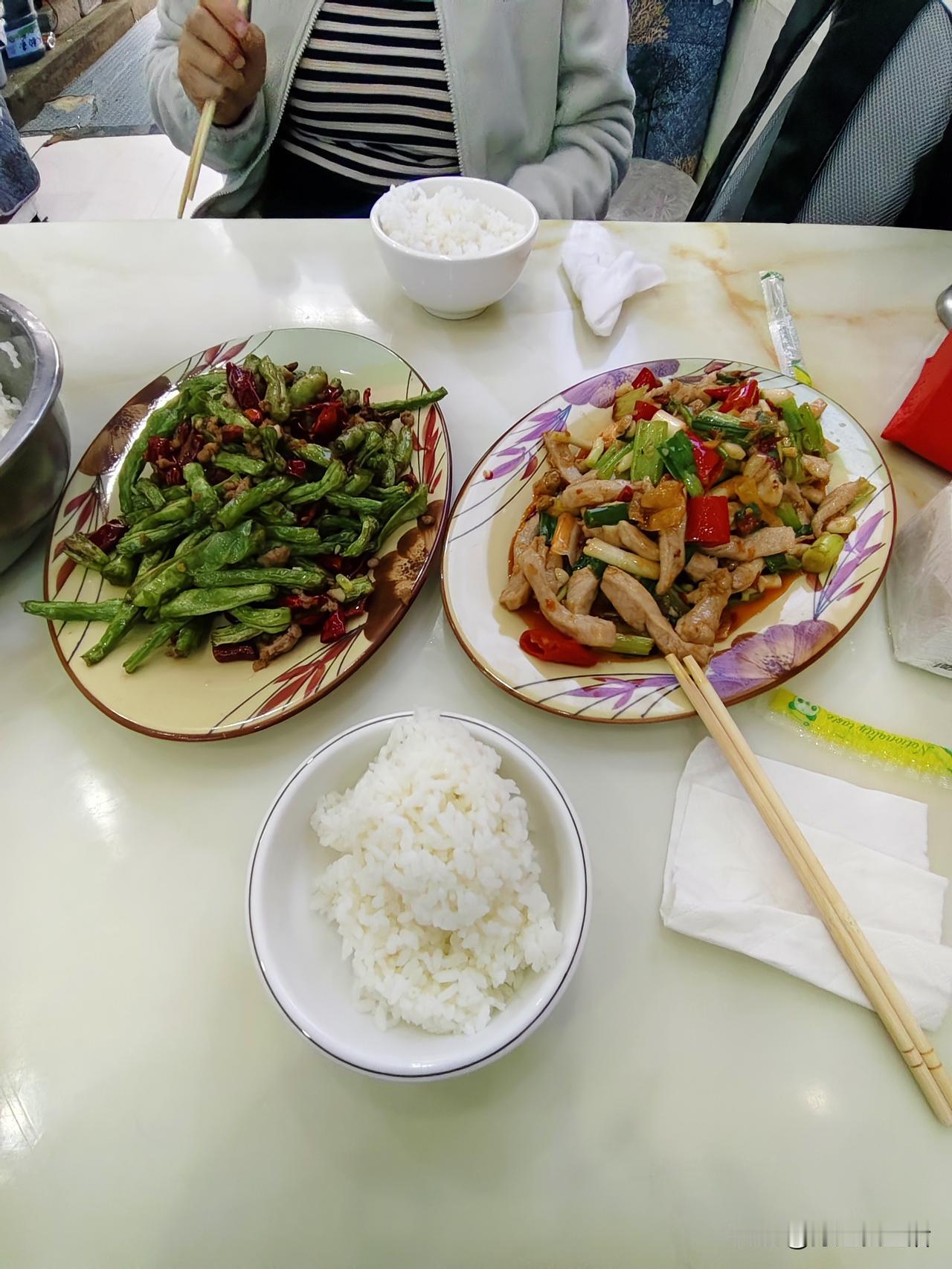 在酒店附近吃了顿家常菜,花了48块钱,味道还不赖。