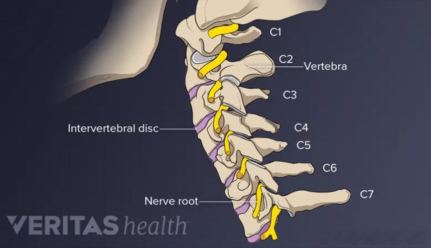 02【神经根型颈椎病】颈椎中有8对颈神经根,C1-C8,这些神经根从脊髓分出,通过椎间孔从脊髓管的两侧穿出(图4)