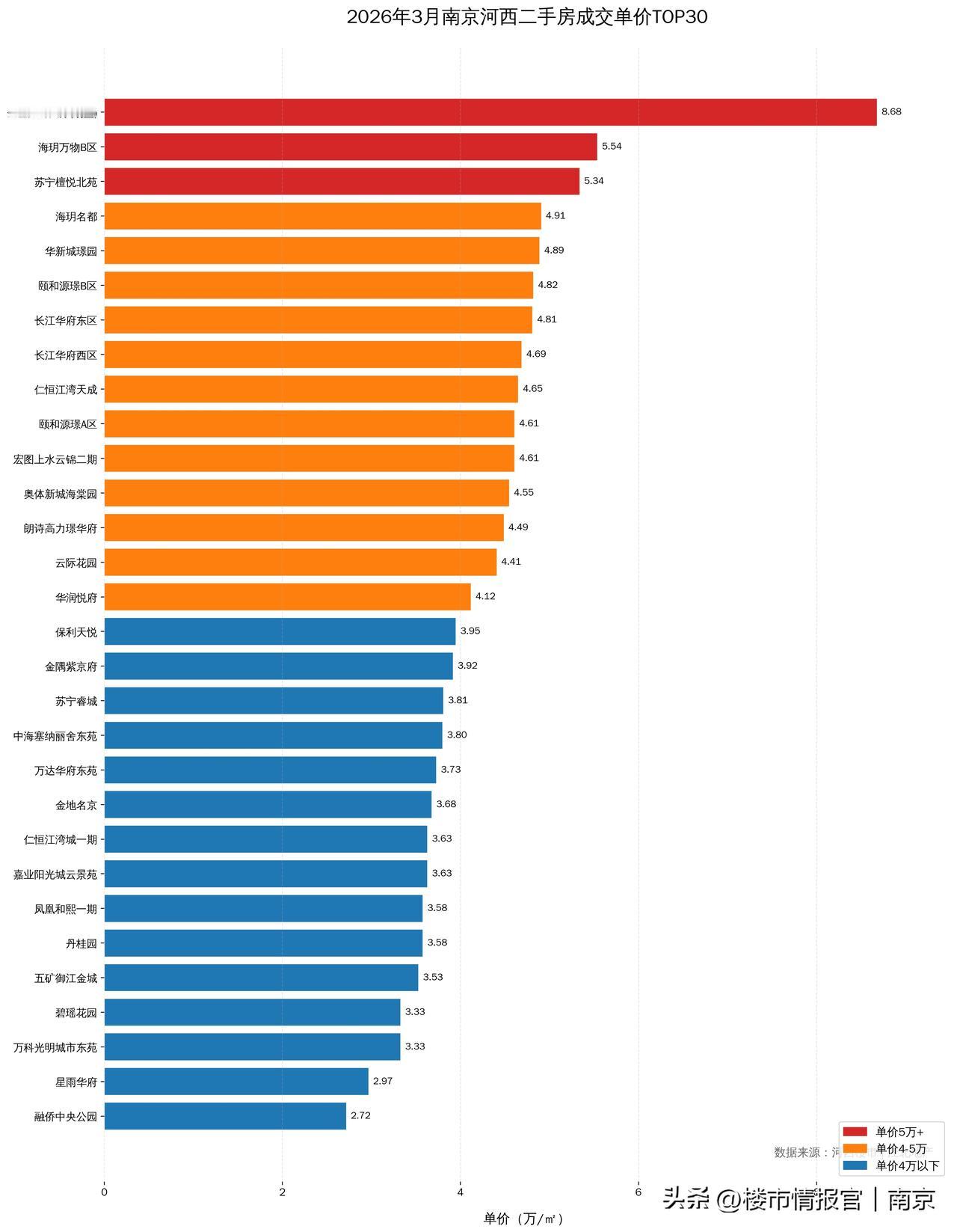 南京买房的朋友注意了!2026年3月河西中全量二手房成交数据新鲜出炉,从价格结构到小区热度,一次性给你讲透!