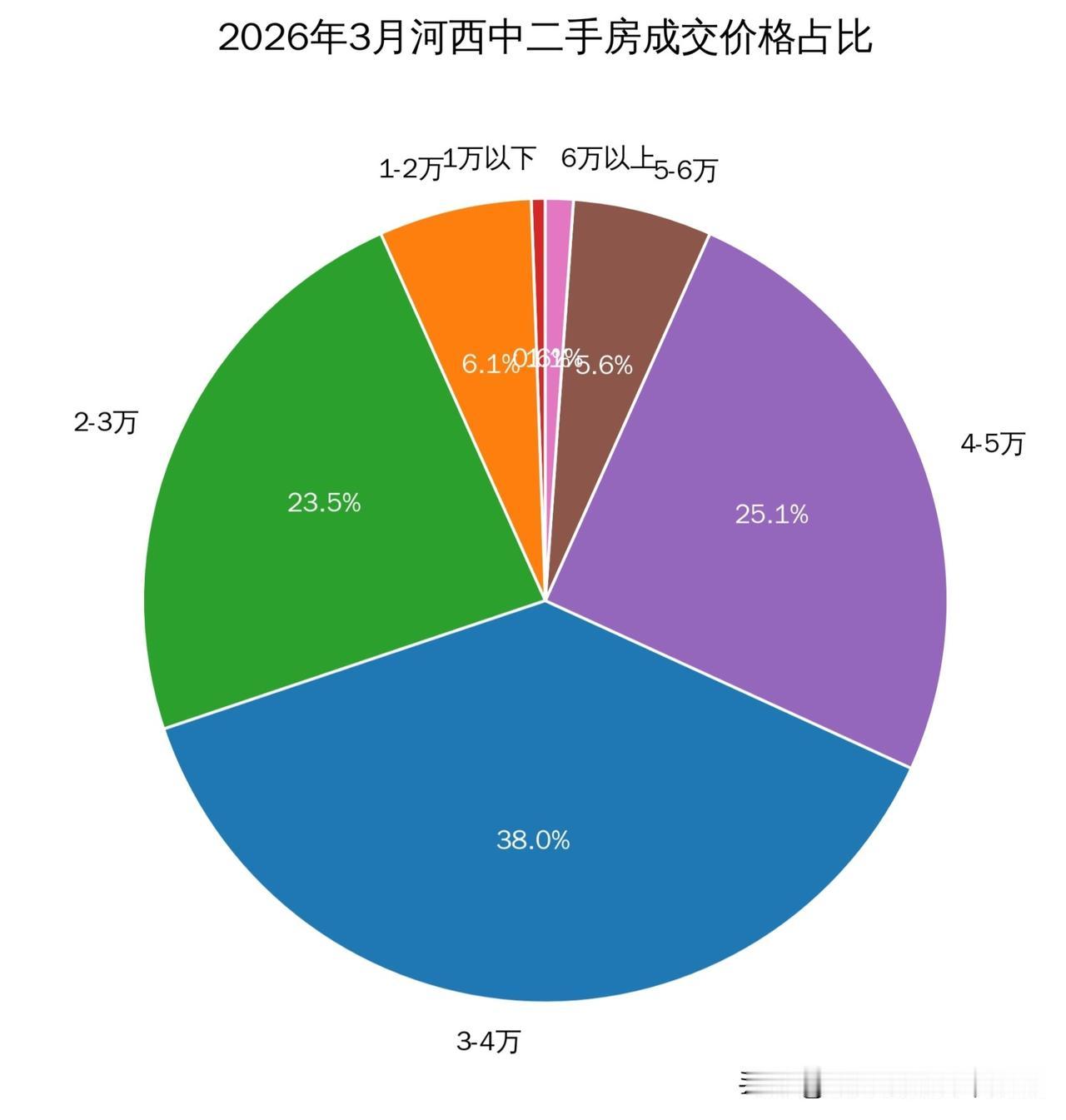 ✅ 绝对主力:3-4万/㎡成交68套,占比34.3%,是河西中刚改/改善的核心价位段,次新品质盘扎堆,流动性拉满