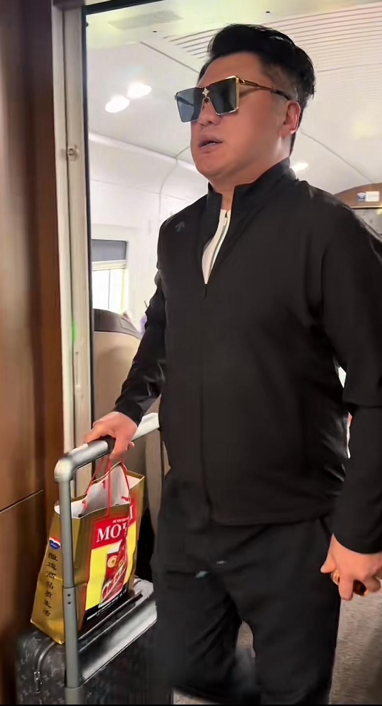 他墨镜一戴,一身黑衣,拖着行李箱出现在高铁商务座,那股子拽劲儿,一看就是网红圈子里的狠角色。