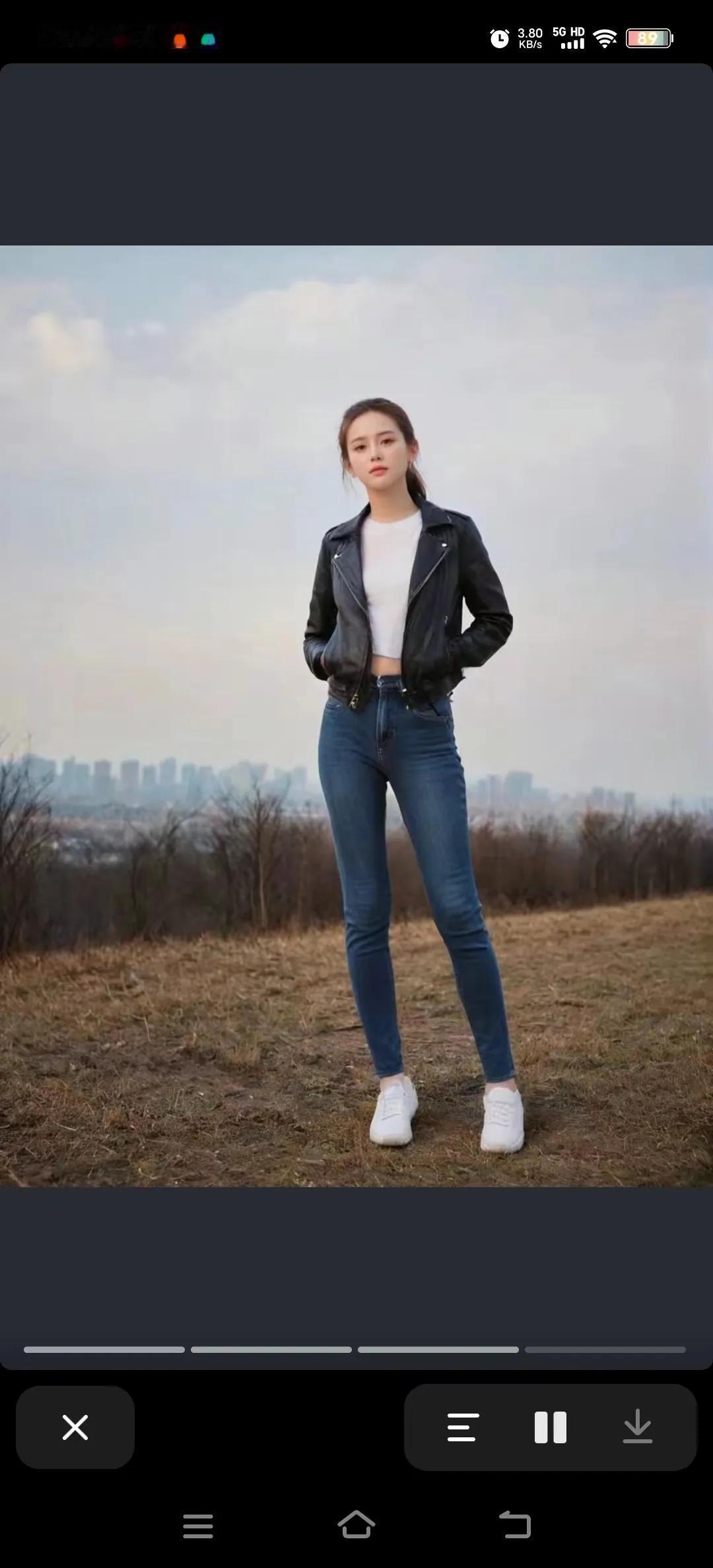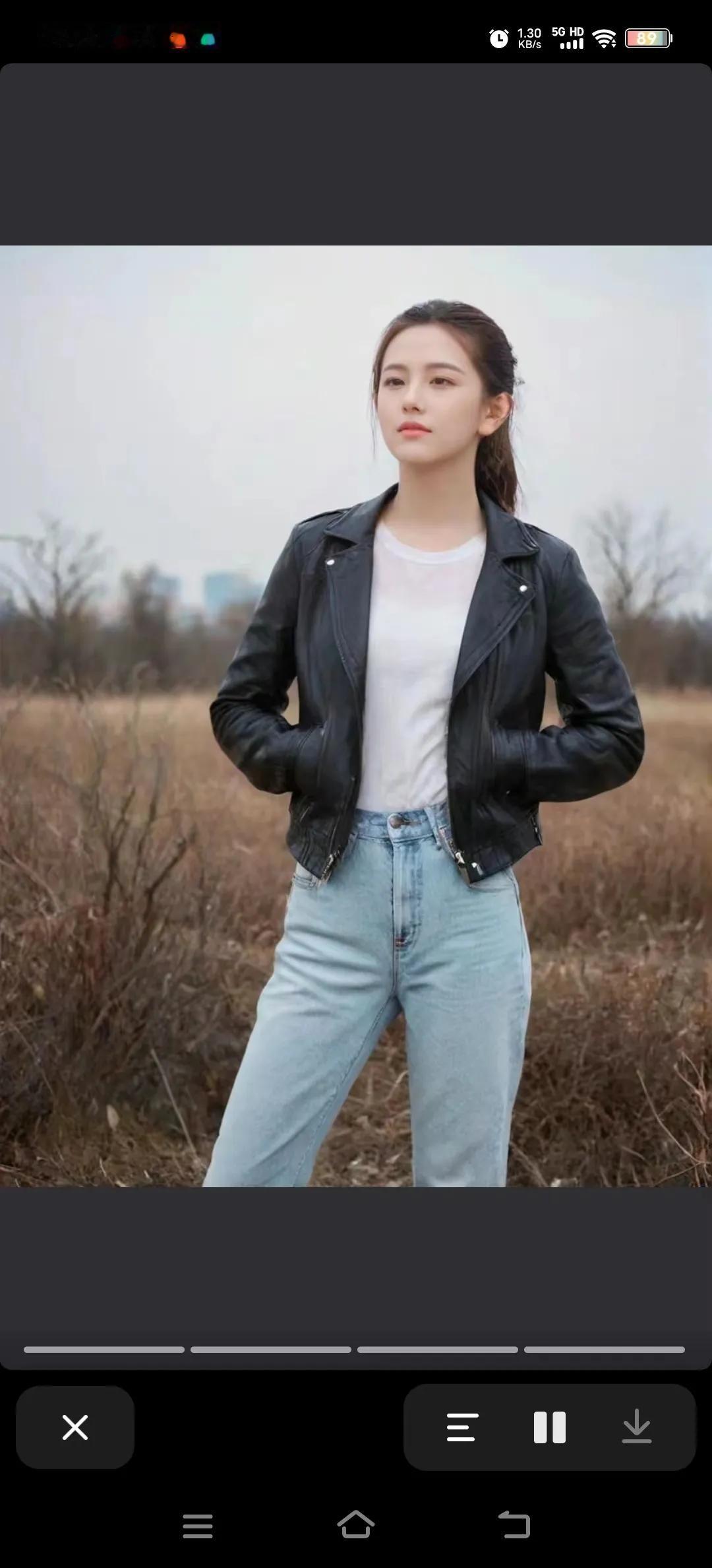 白衣佳人笑语翩,牛仔裤伴身娇。