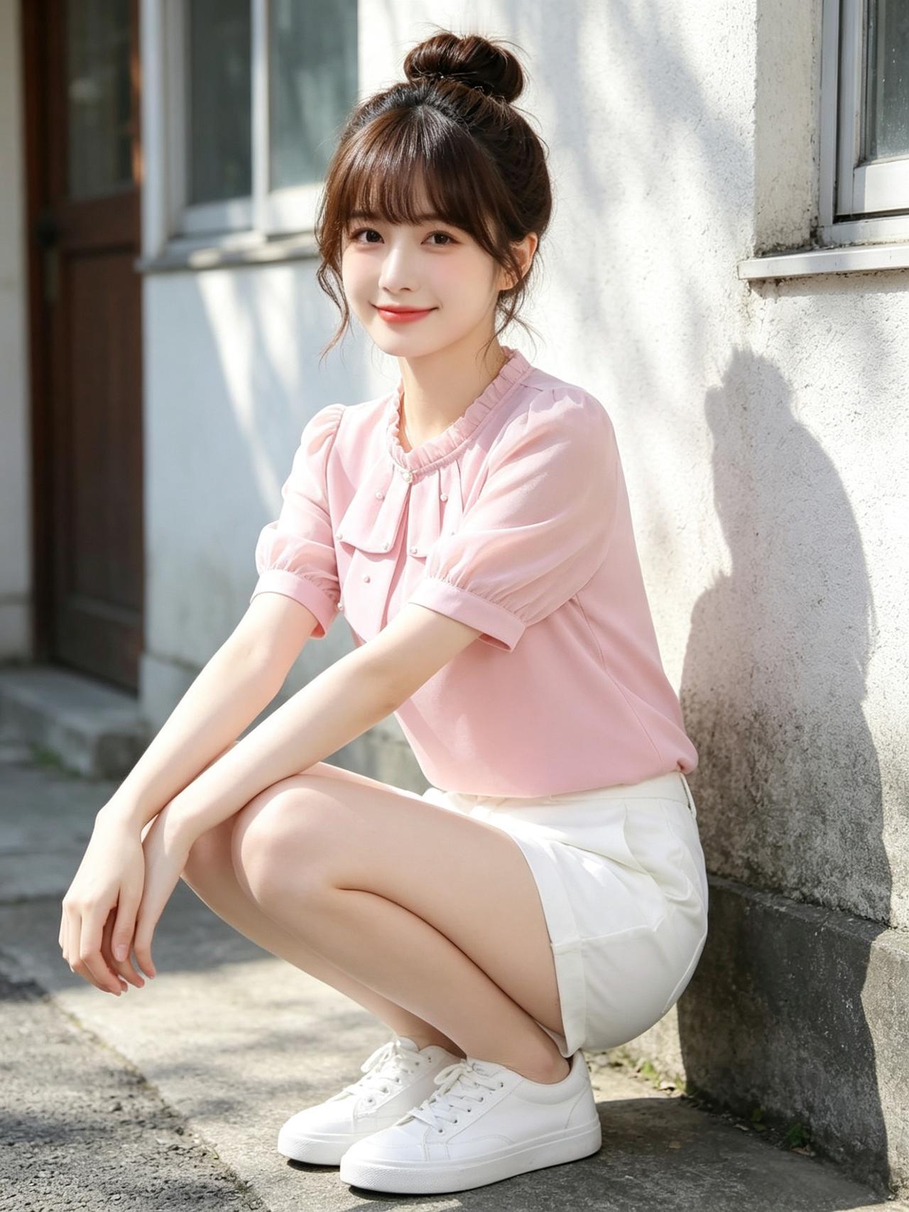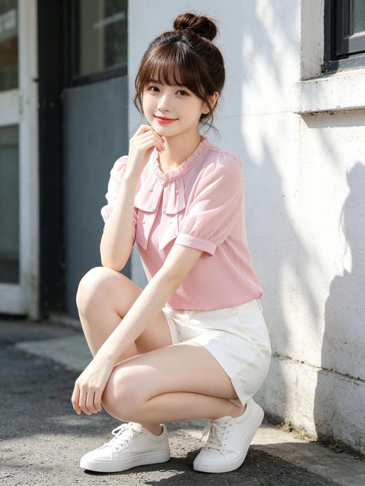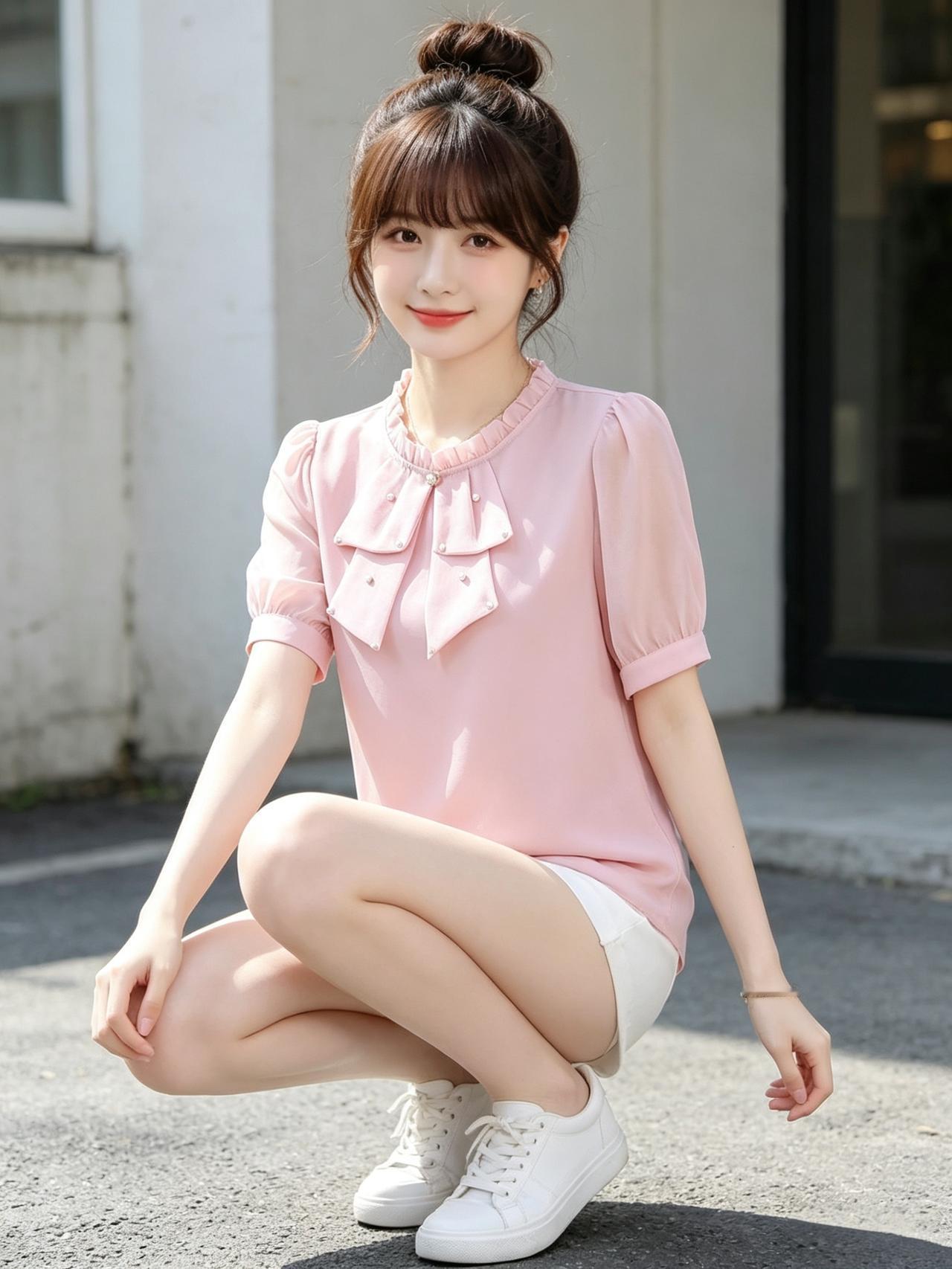 甜美少女风,粉色蝴蝶结上衣搭配白色短裤,元气满满!🌸👗👟优雅自信穿搭分享