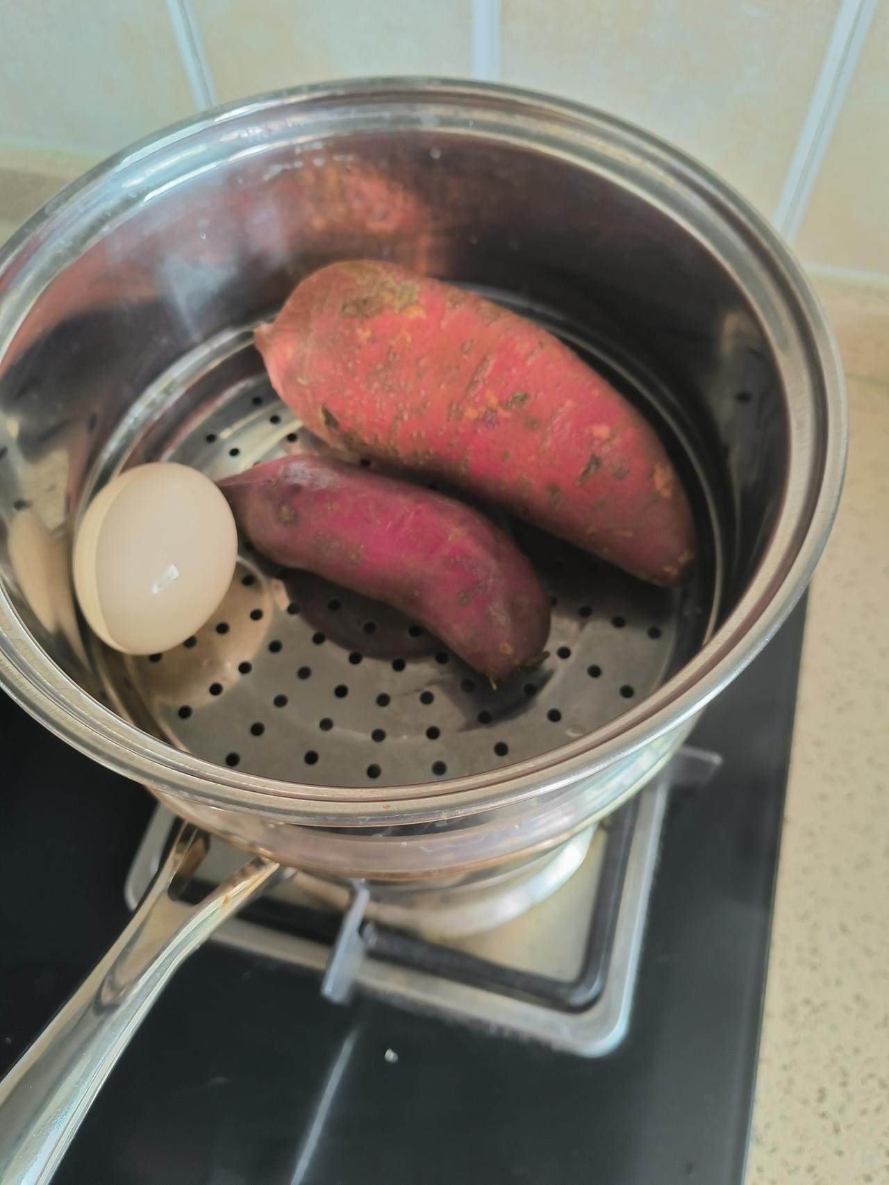 早上起来就给自己蒸了两个红薯