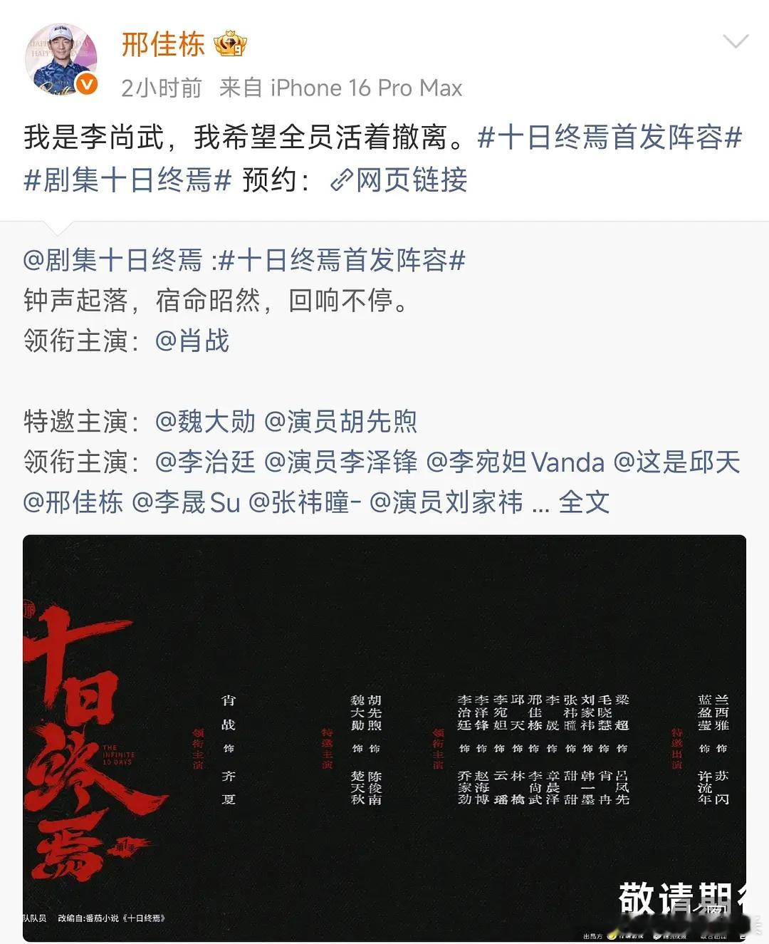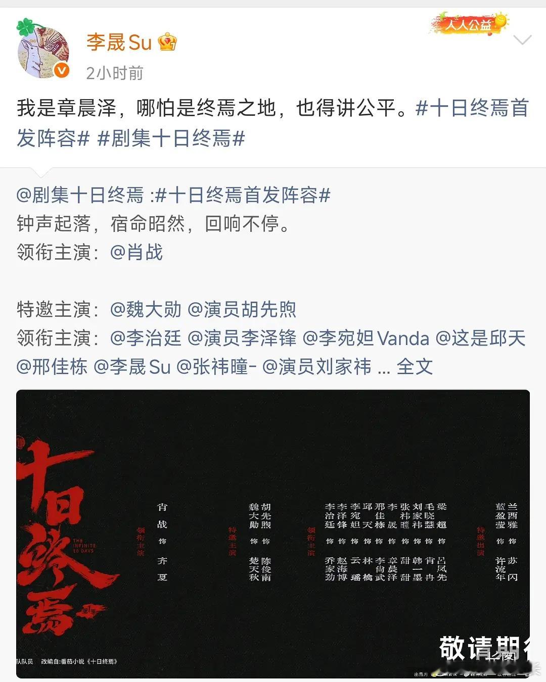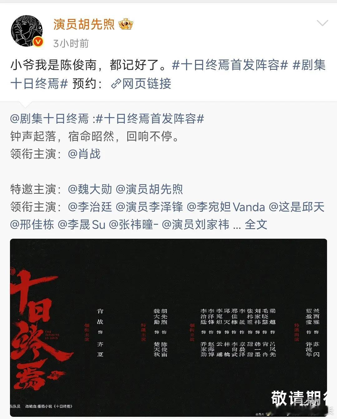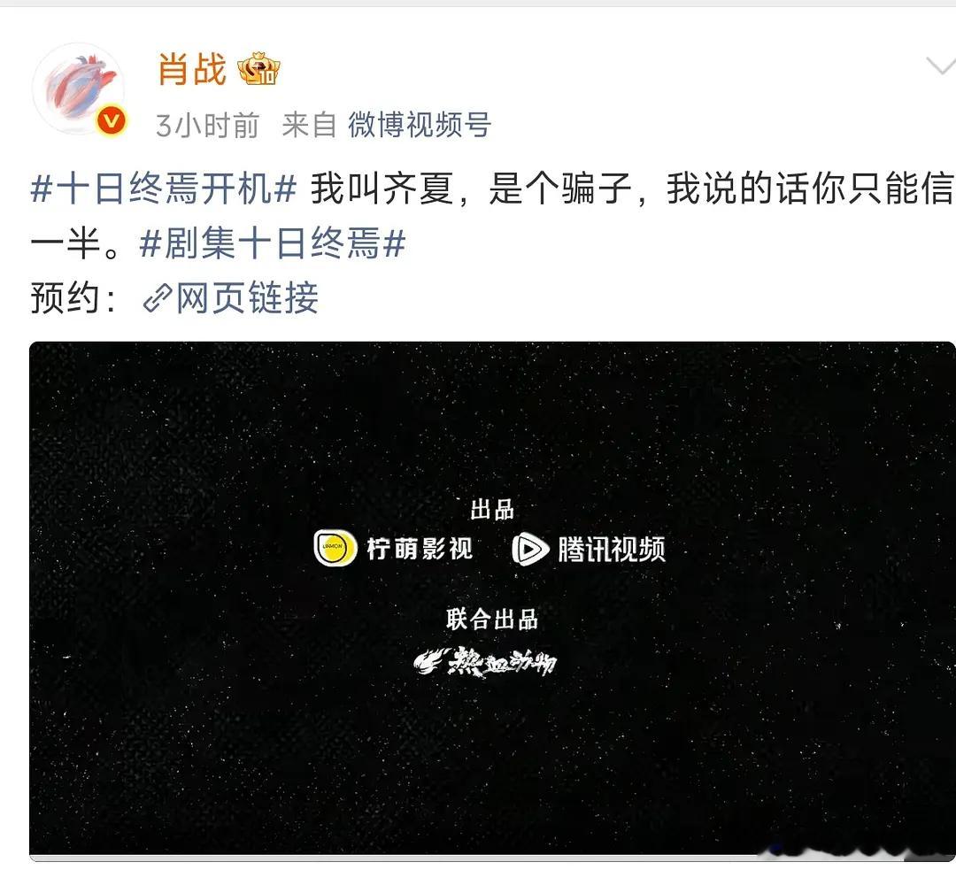 企鹅🐧家孙总这两天肯定笑不动了啊!《十日终焉》刚官宣,这热度就冲顶了!肖战发的
