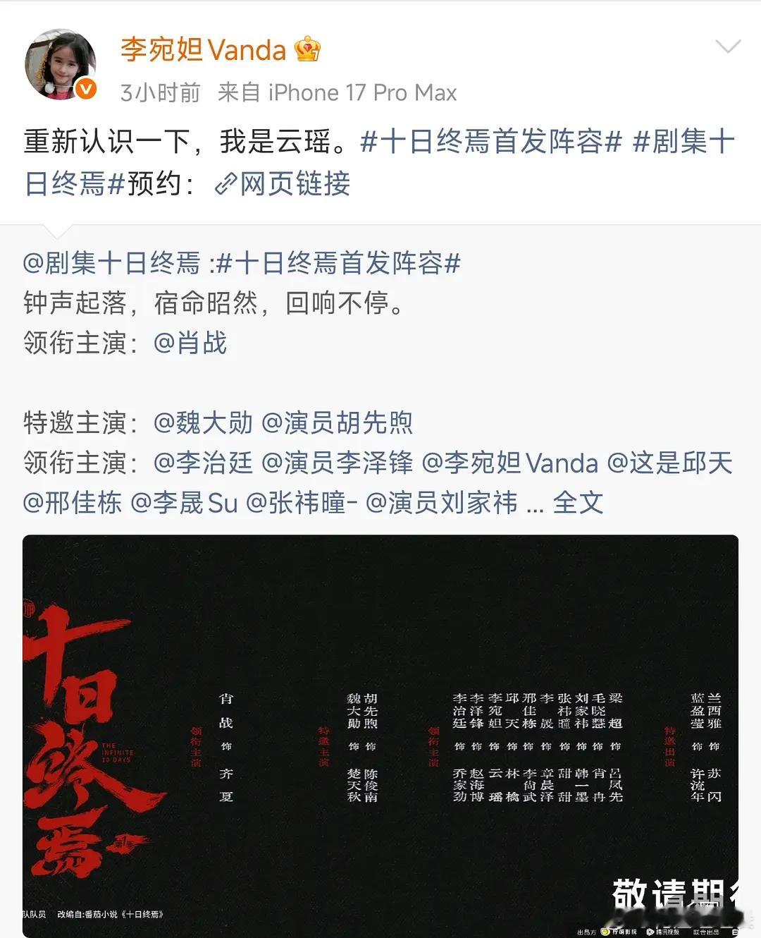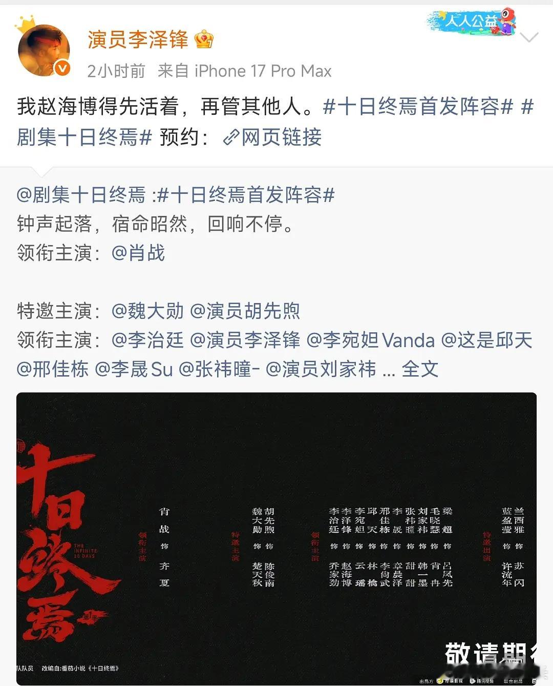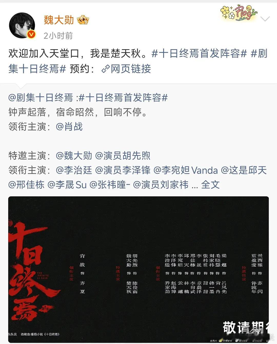 企鹅🐧家孙总这两天肯定笑不动了啊!《十日终焉》刚官宣,这热度就冲顶了!肖战发的