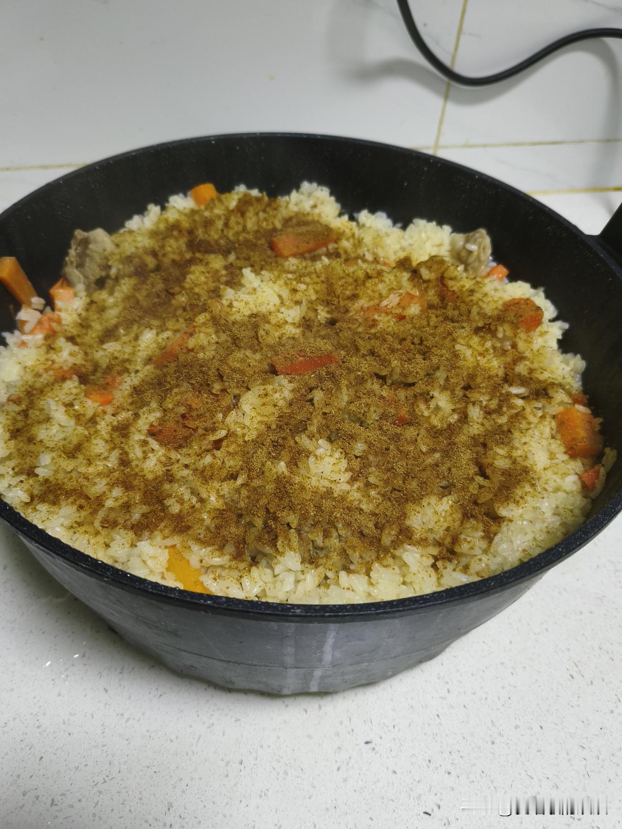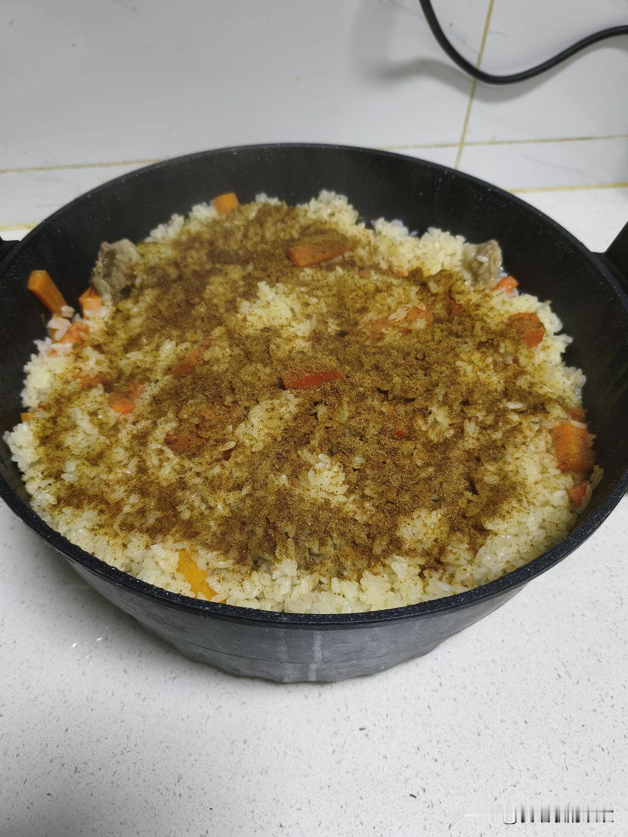 晚上临睡前,我做了一锅孜然味的抓饭,却一口都没有吃(下图)。