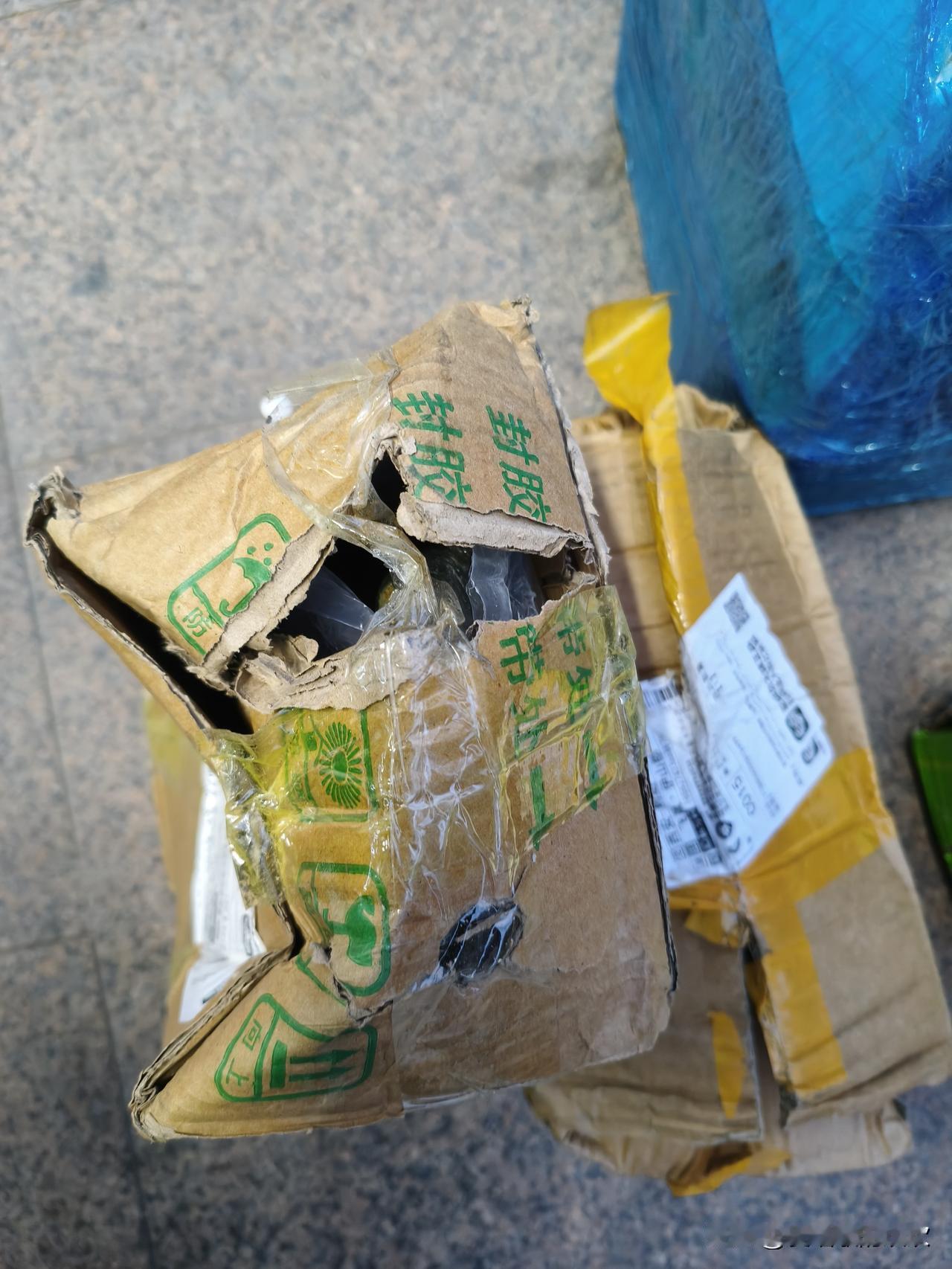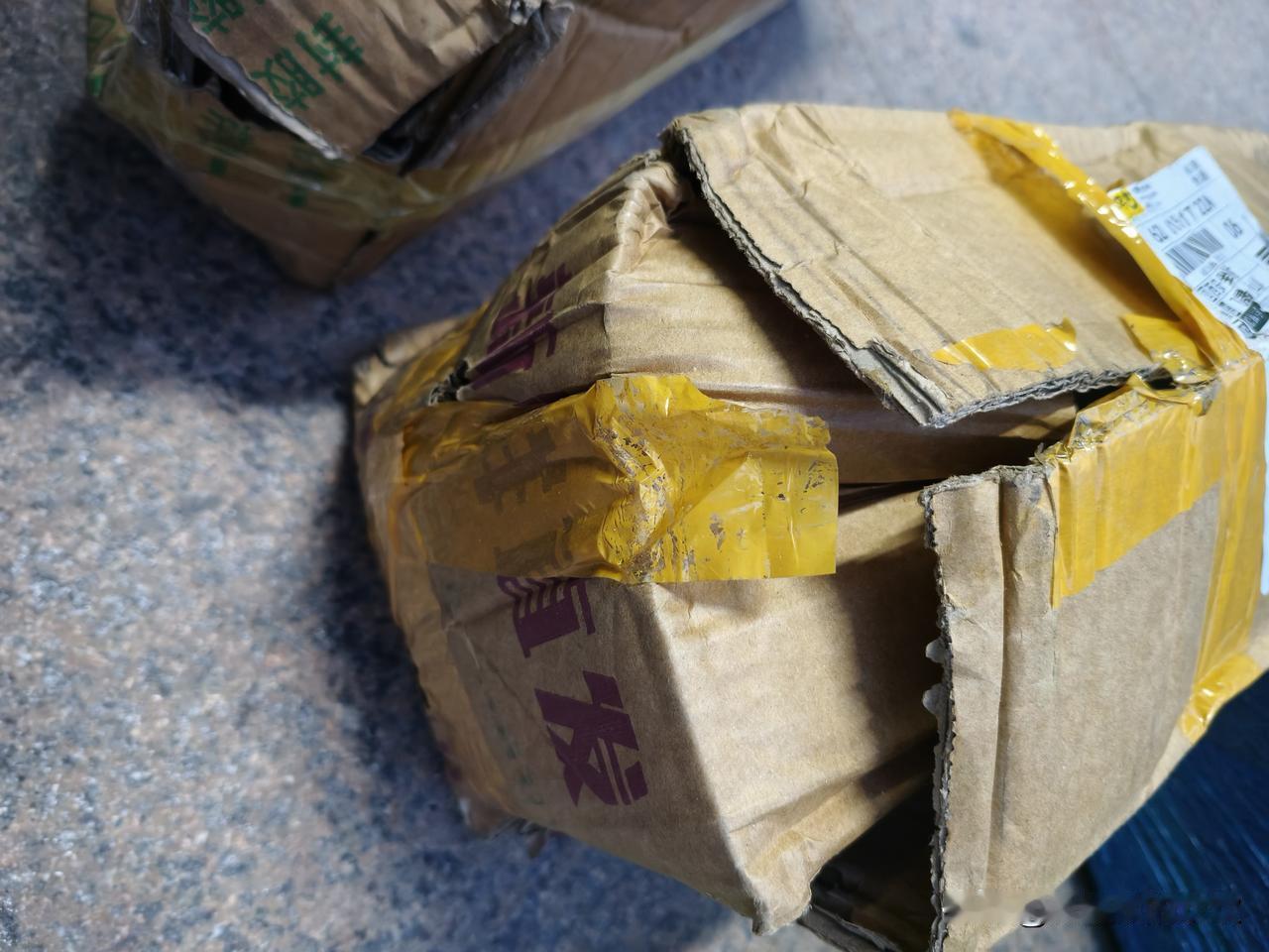 没想到拿快递的时候,才发现快递箱子烂了两个(下图)。