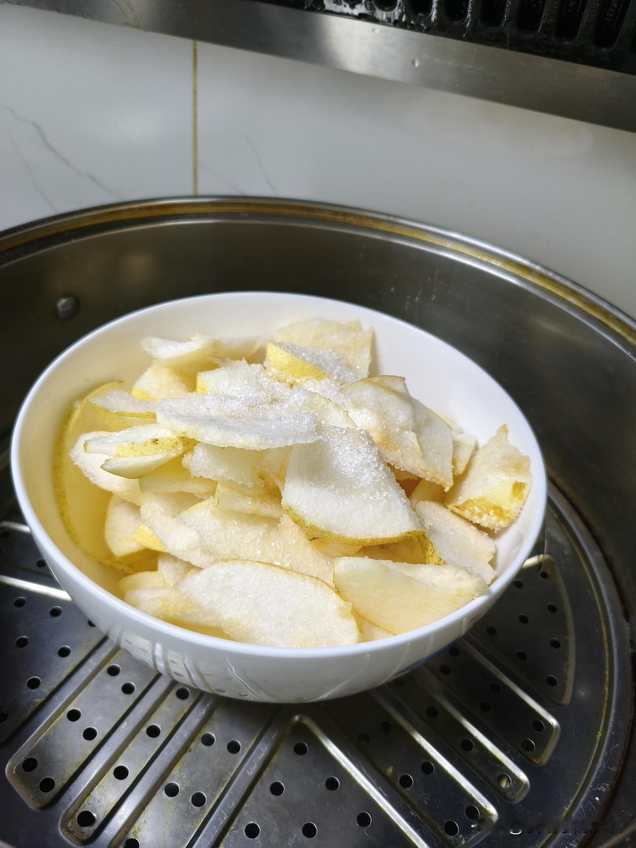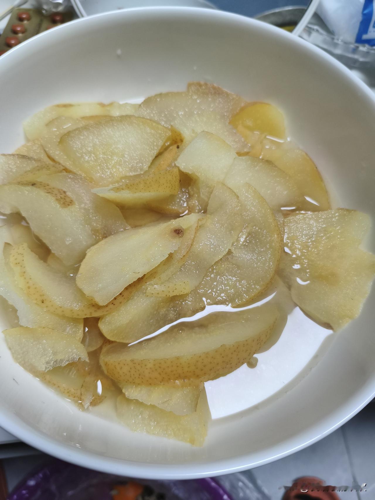 反正,冰糖蒸梨润肺又止咳。蒸着吃也没有什么坏处。我只是纯属处理梨子。