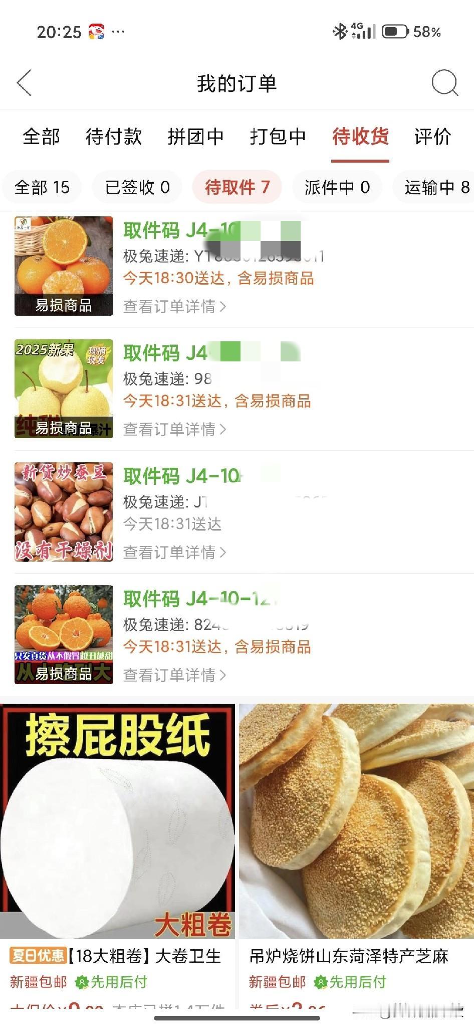 因为今天一下到了七个快递,差点给我整不会了。主要是买了几箱水果。我怕一趟拿不完。