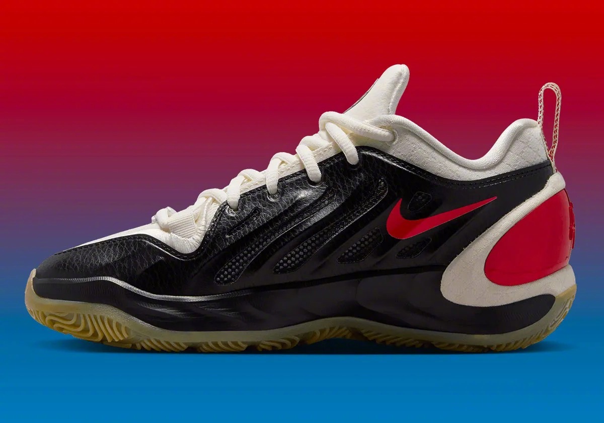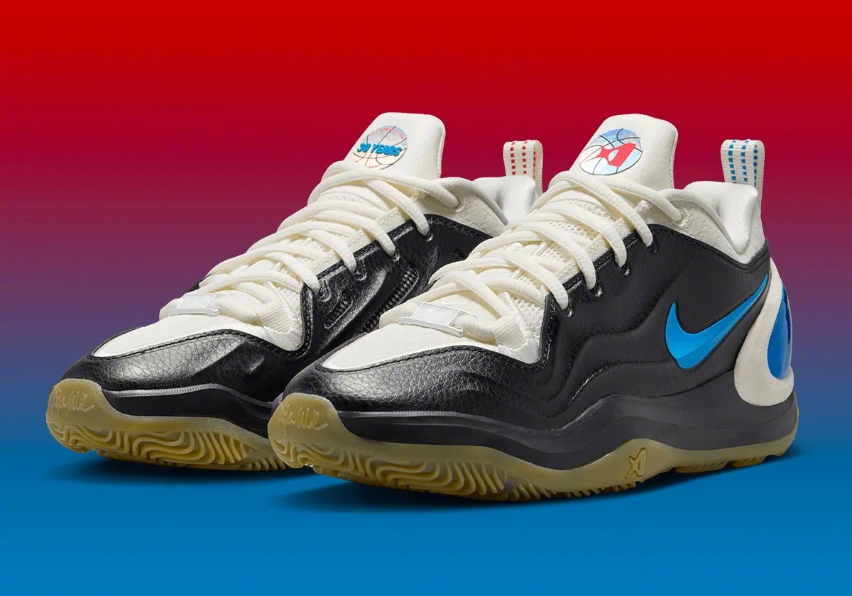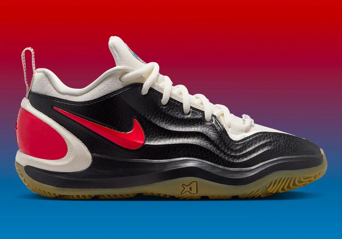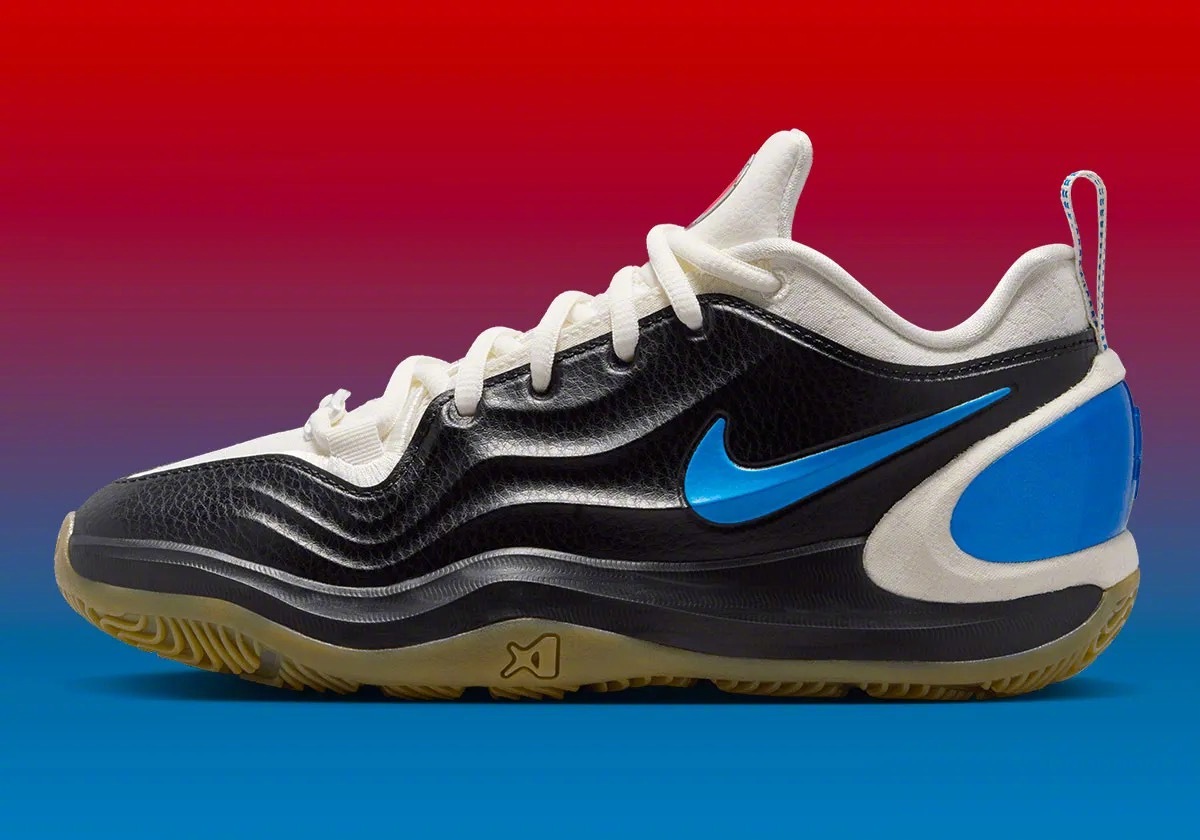 阿贾·威尔逊 A’TWO「WNBA 30周年」纪念版官图,黑色皮革鞋面+白色内衬和鞋舌,左右脚分别为红&蓝鸳鸯色设计,右脚鞋舌上带有WNBA 30周年的纪念标识🏀