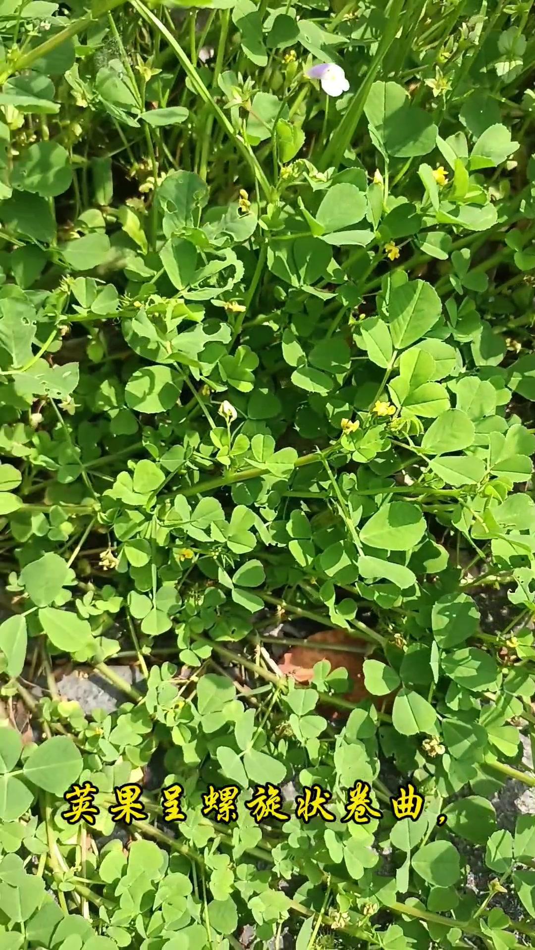它有草头、金花菜、秧草等别名,《本草纲目》称其为母齐头。常见于田埂、路边、河岸及草坪,喜湿润且耐轻度荫蔽。茎匍匐或斜升,分枝多;复叶具3片小叶,小叶倒卵形或心形,边缘上部有细锯齿,叶面常具浅色斑纹;头状花序腋生,花冠黄色;荚果呈螺旋状卷曲,边缘有刺或瘤突,种子肾形,黄褐色。
