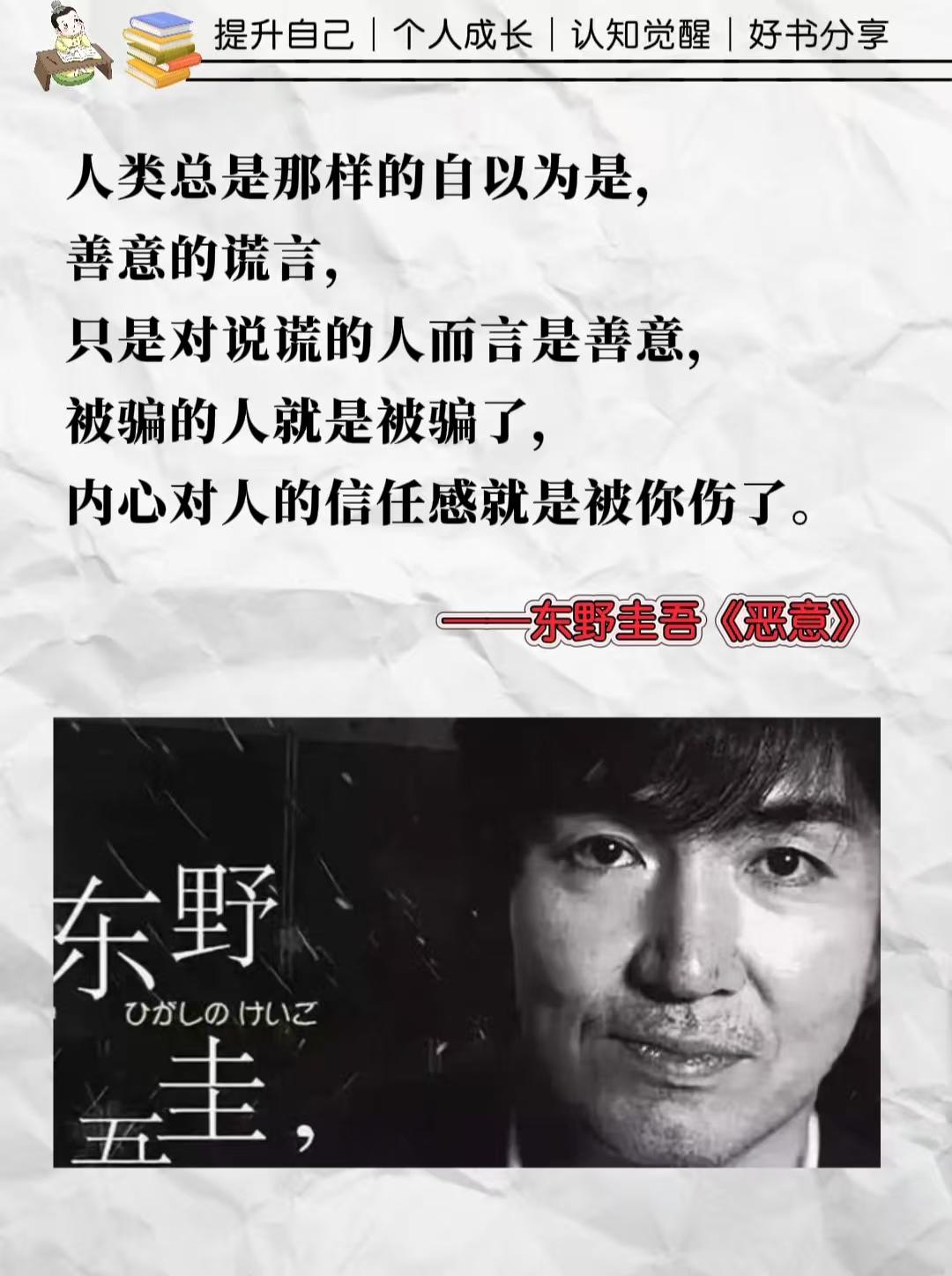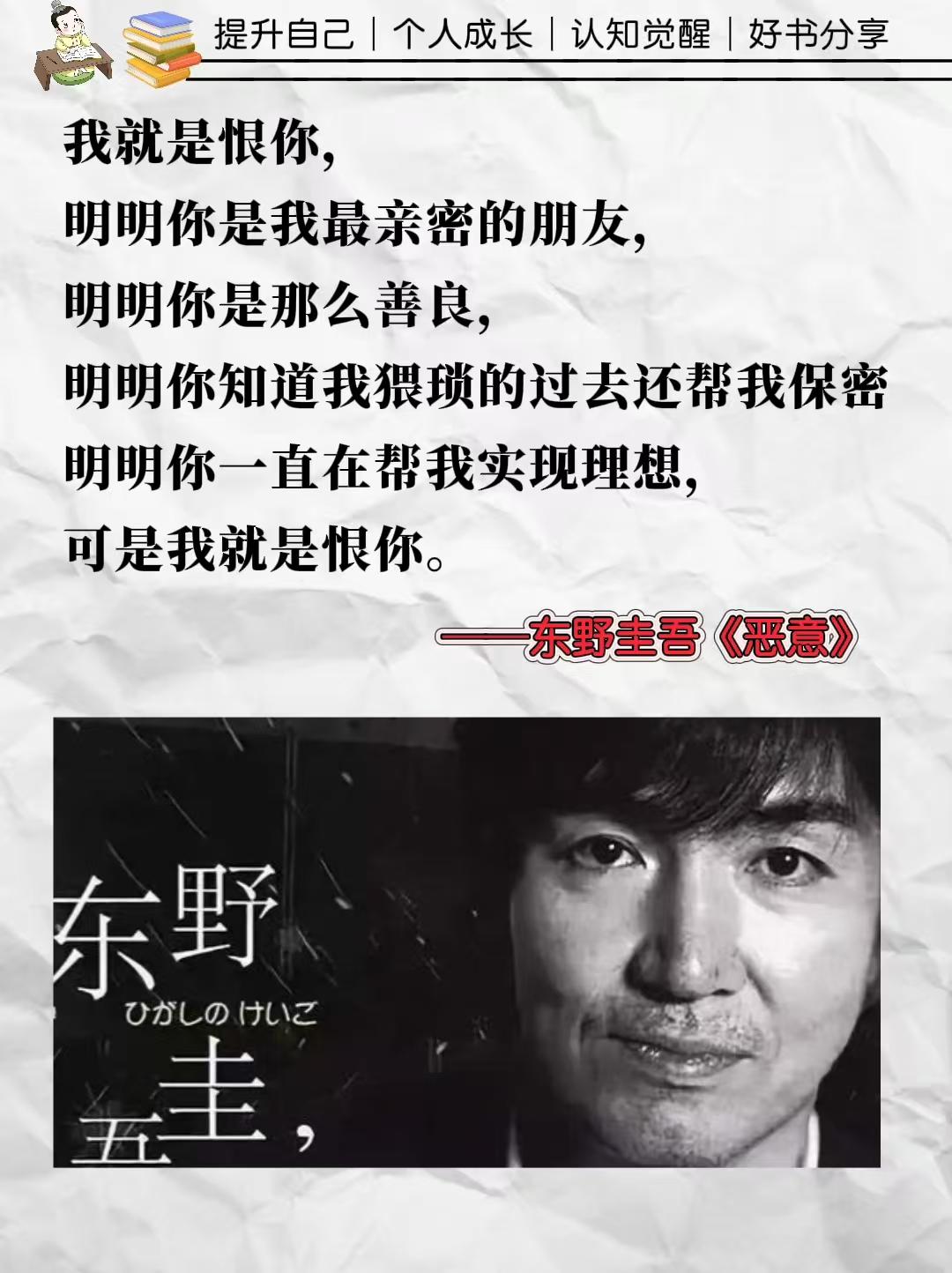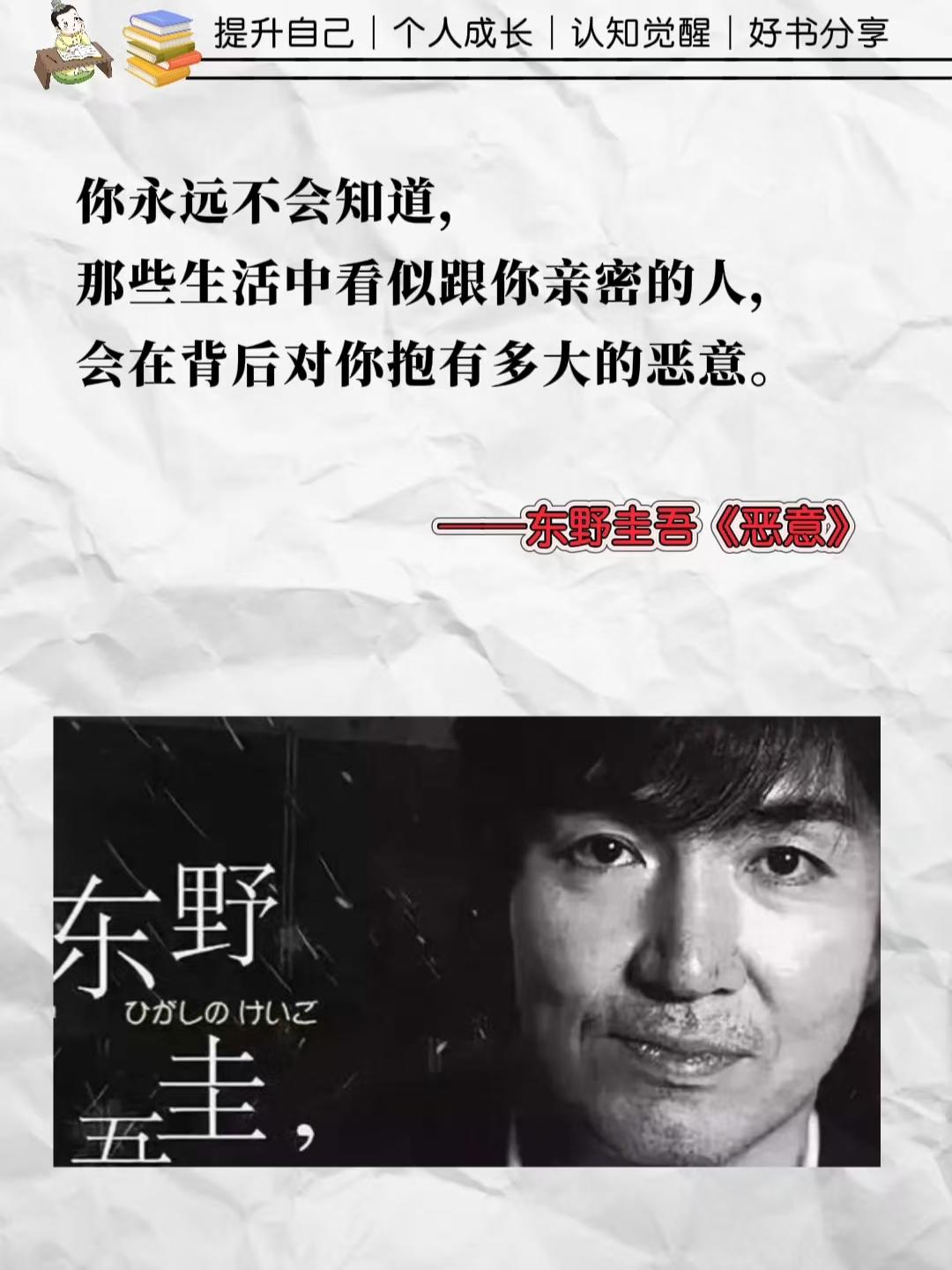 东野圭吾说: 人性最大的恶是见不得别人好,你永远不会知道,那些生活中看似亲密的朋
