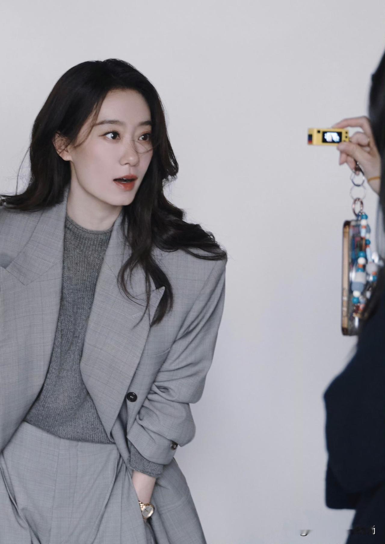 张小斐这套灰色系穿搭,高级感直接拉满✨ 张小斐这身浅灰色格纹西装套装太绝了!