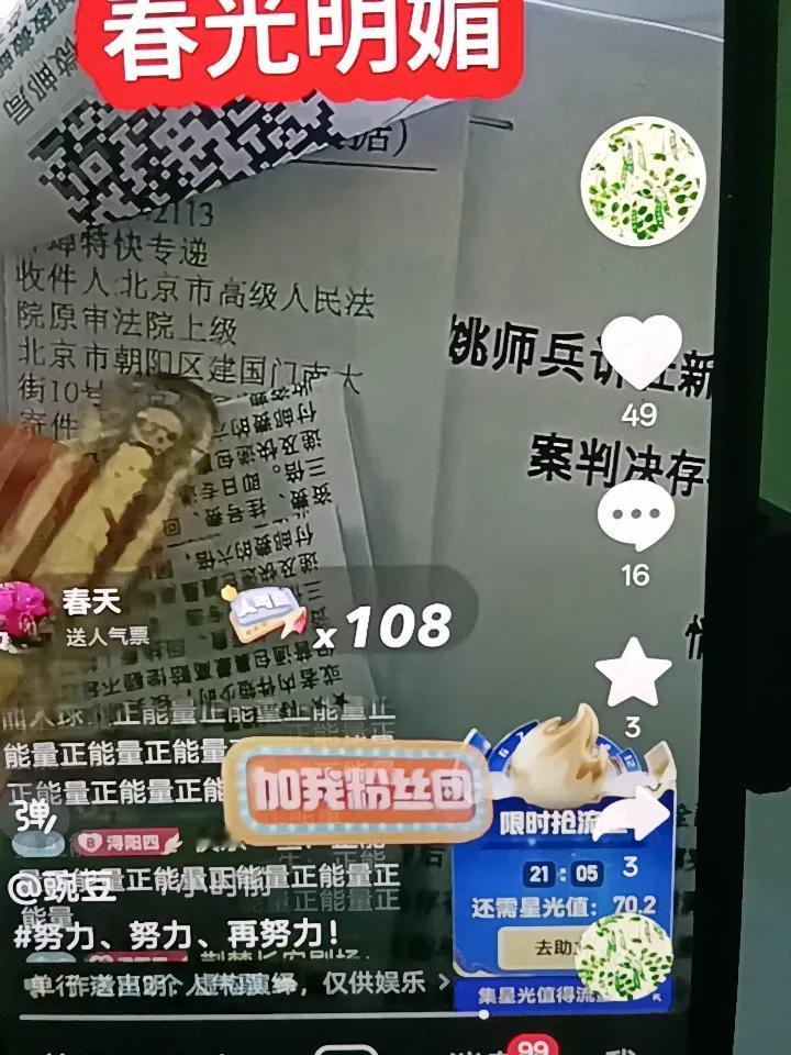 有人问他寄到哪里了,他亮出来寄北京市高级人民法院,地址北京市朝阳区。