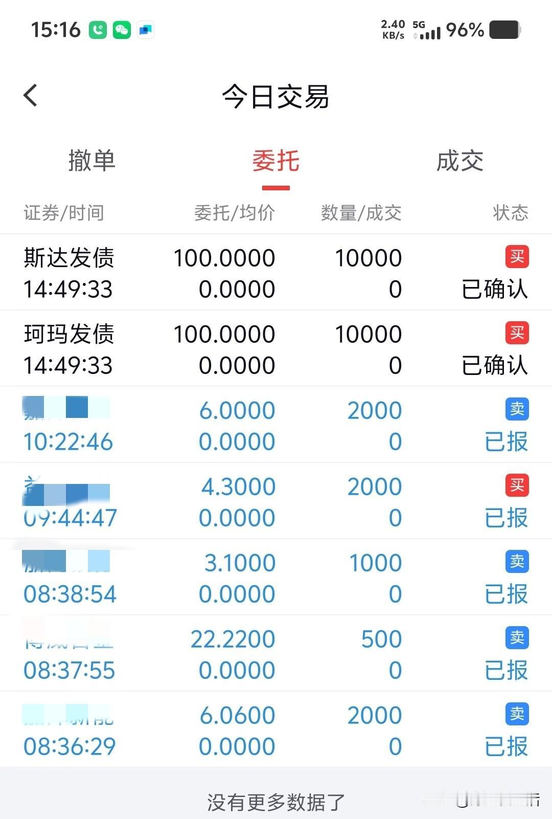 如今周一至周五,开盘前我会提前挂好想卖和想买的股票单,至于能否成功买卖,一切顺其自然。