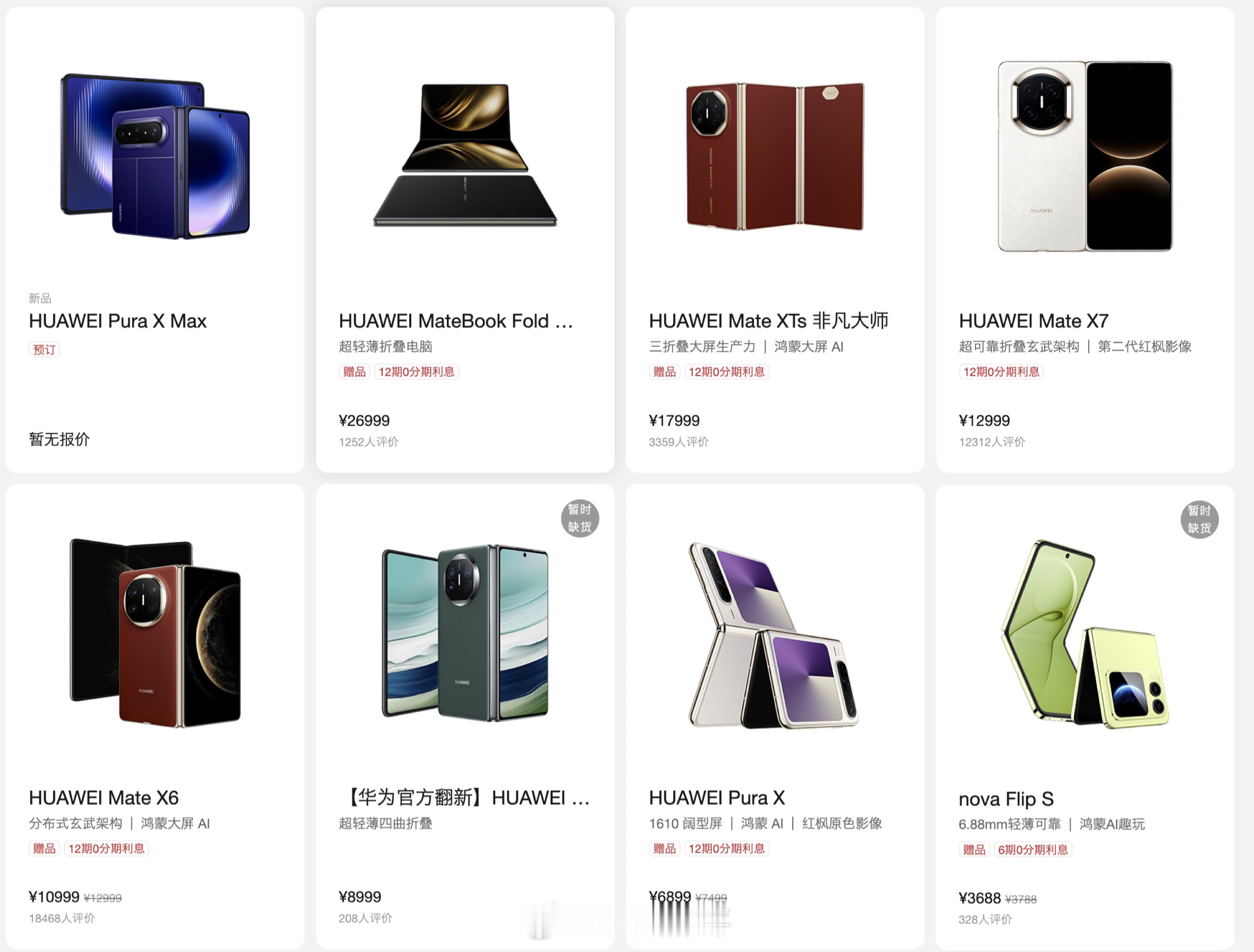华为:万物皆可折华为Mate Xs外折叠华为Pocket2竖向小折叠华为Pura X阔折叠华为Mate X7横向大折叠华为Mate XT非凡大师三折叠华为MateBook Fold非凡大师折叠鸿蒙电脑华为Pura X Max大阔折