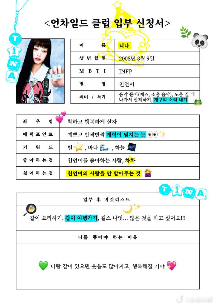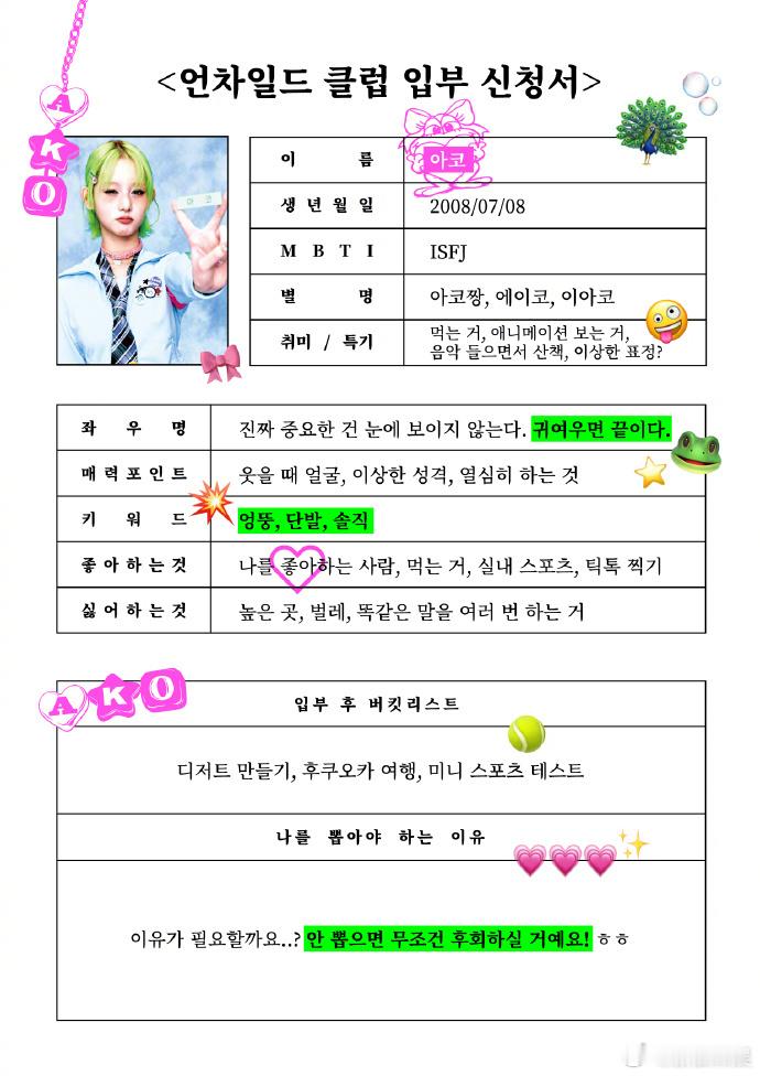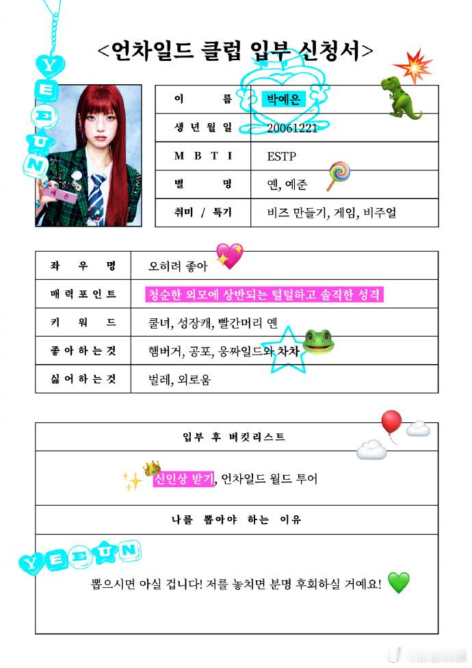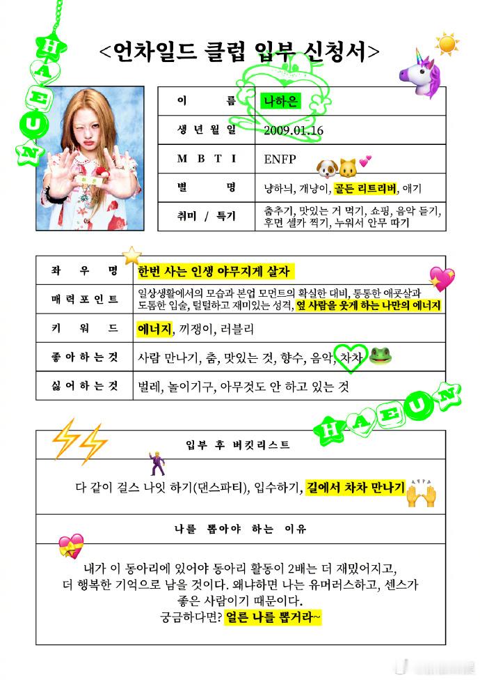 罗夏恩携新团UNCHILD出道 <UNCHILD社团招新报名表> 好可爱的报名表