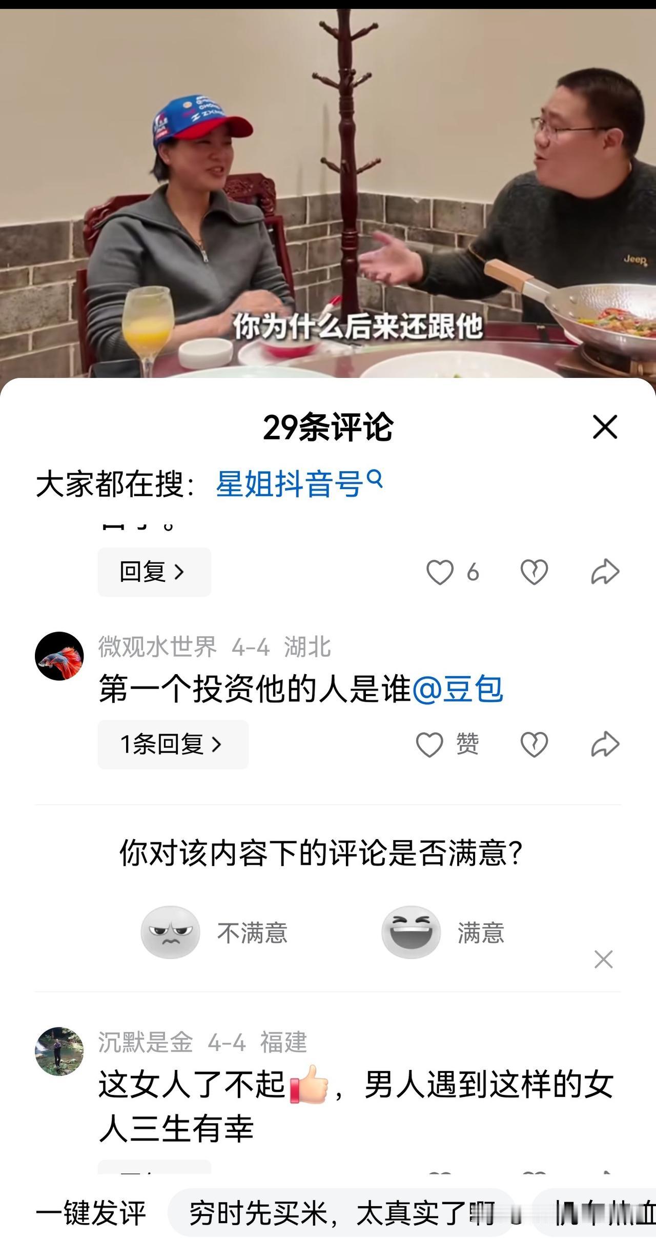 看了记者和张雪的妻子星姐闲聊的视频,评论区有人@豆包问谁是张雪的第1个投资人?豆